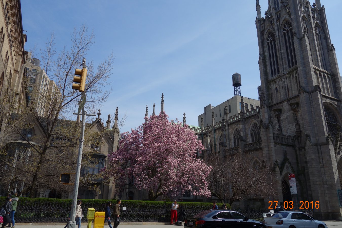 Βρισκόμαστε στη πλατεία του Δημαρχείου. Στο κέντρο της παρακάτω φωτογραφίας βρίσκεται ένας από τους πιο ιστορικούς ουρανοξύστες της Νέας Υόρκης, το Woolworth Building.