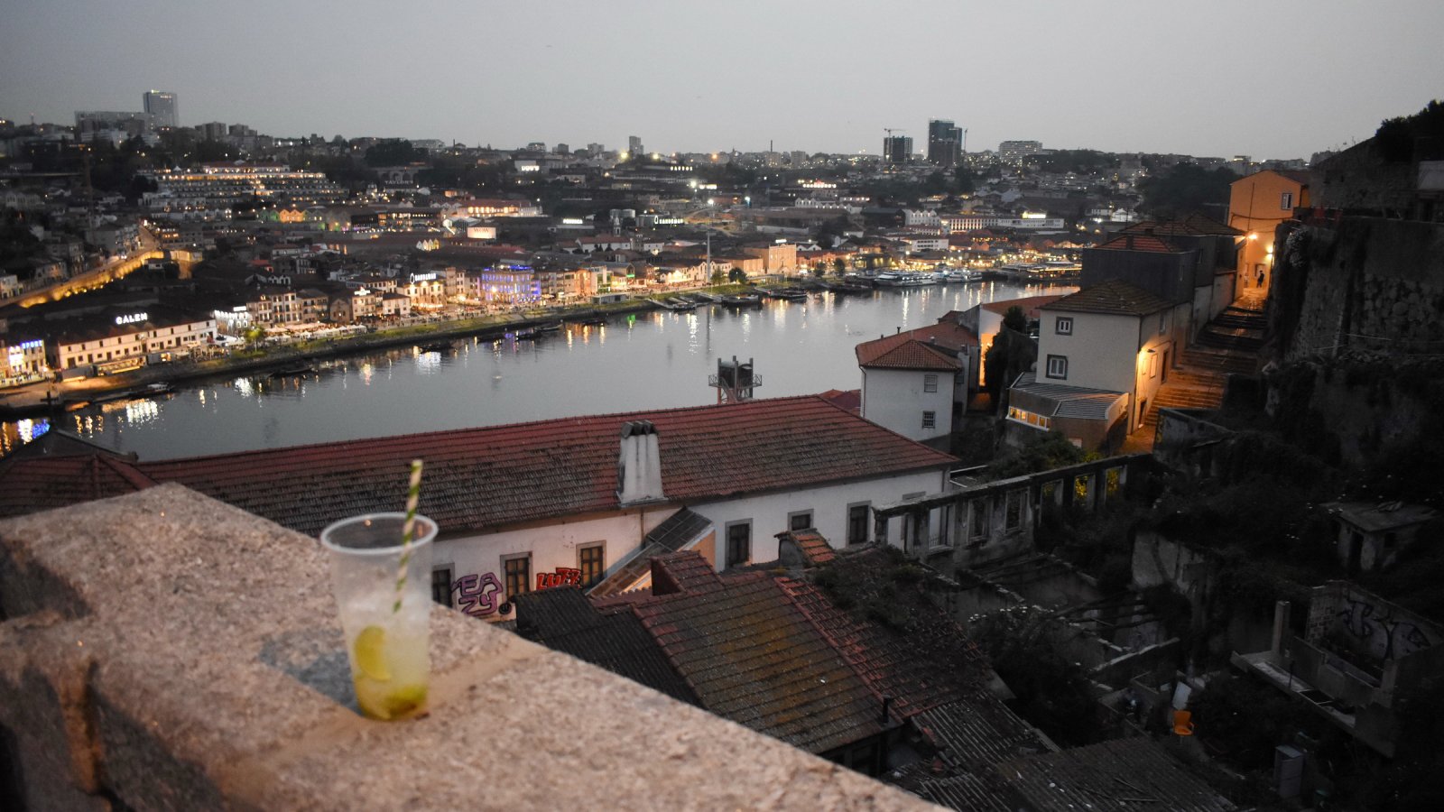 Ακουμπήσαμε τα ποτά και τους εαυτούς μας σε ένα πεζούλι του παλιού μοναστηριού «Mosteiro da Serra do Pilar», που εκτός των άλλων αποτελεί και το καλύτερο ίσως Miradouro της πόλης του Πόρτο: