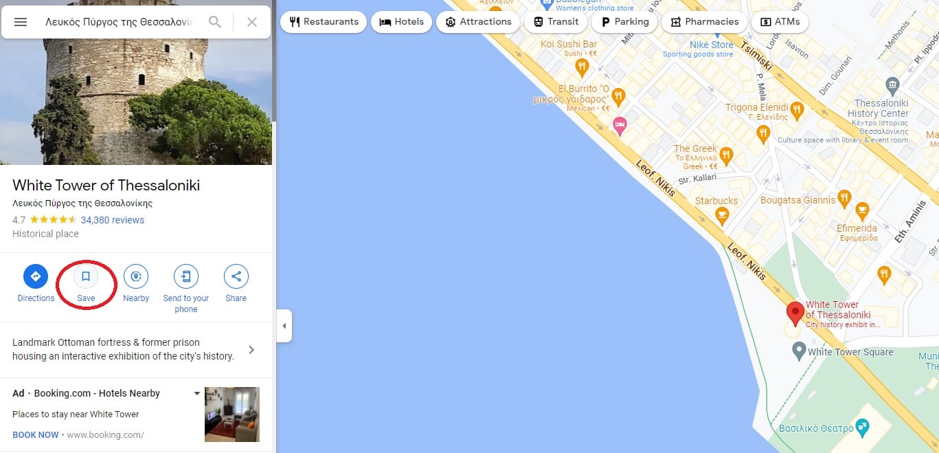 Καλή σου μέρα. Είναι πάρα πολύ απλό. Αρχικά βρίσκεις στο maps το σημείο/αξιοθέατο που σ' ενδιαφέρει. Ακριβώς από κάτω πατάς αποθήκευση στα ταξιδιωτικά πλάνα και μετά το βλέπεις σαν χαρακτηρισμένο σημείο με το σύμβολο της βαλίτσας. Παράδειγμα: