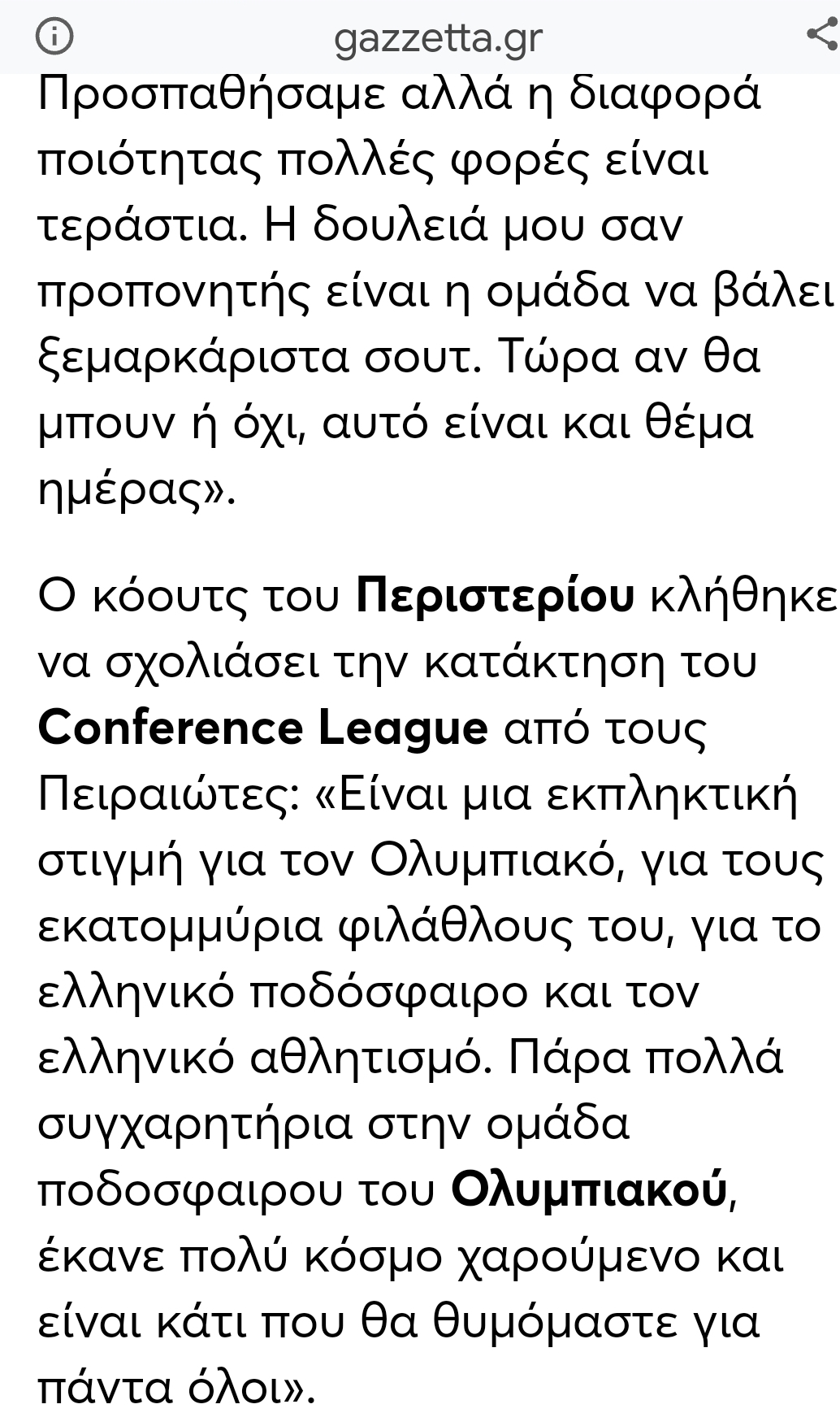 Για το. Conference και τον Ολυμπιακό δεν σας τα παν καλά.