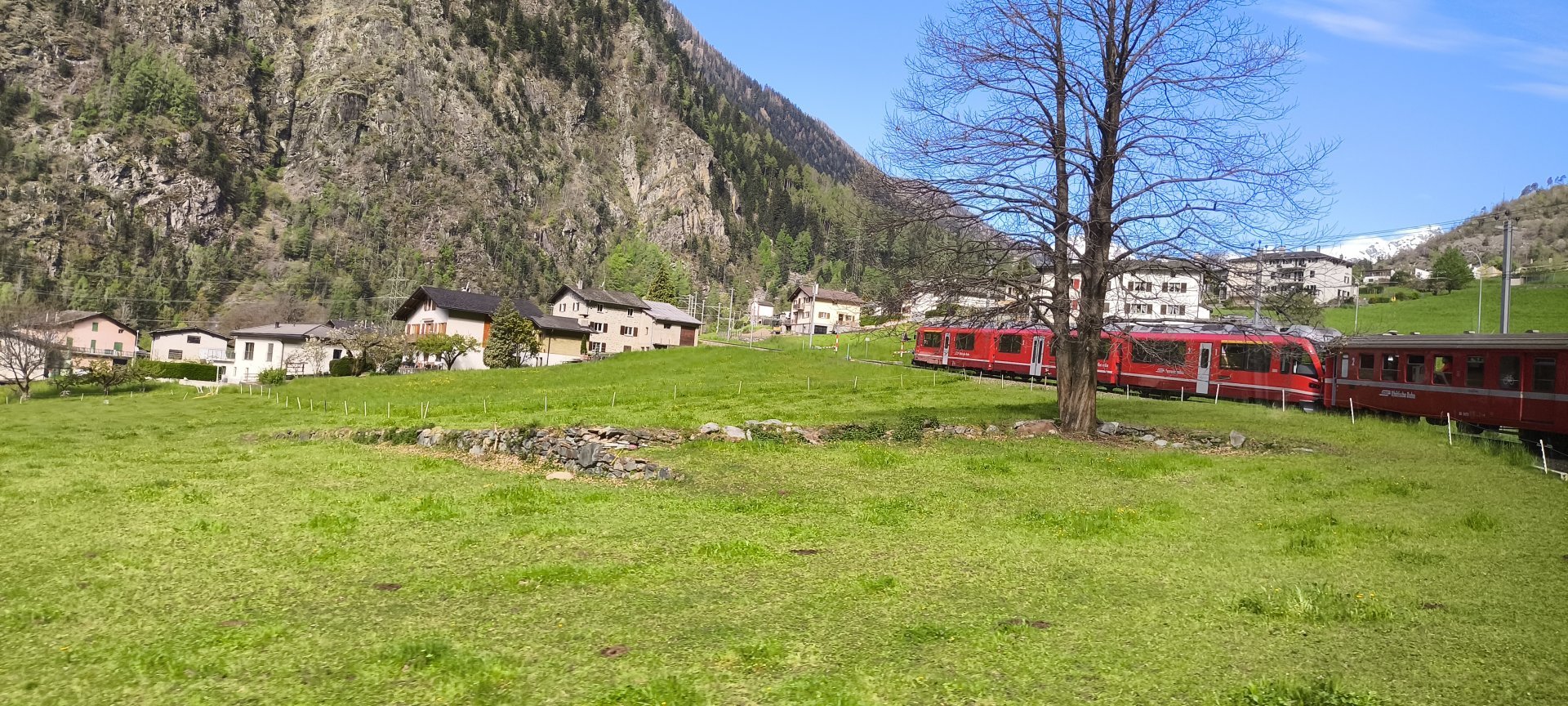 -Το τρένο που είχαμε κλείσει από το site των ελβετικών σιδηροδρόμων ήταν για τις 9, αλλά λόγω της καθυστέρησης δεν το προλάβαμε. Κανένα πρόβλημα πήραμε αυτό των 9:40. Κι εδώ να διευκρινίσω ότι τη διαδρομή που κάνει το Bernina Express μπορείς να την κάνεις με τα απλά τοπικά τρένα τα οποία είναι και οικονομικότερα (εγώ πλήρωσα 33 φράγκα με αγορά την προηγούμενη μέρα, αν κλείσεις αρκετά νωρίς παίζουν και εκπτωτικά). Το καλό με το εισιτήριο αυτό (point to point λέγεται) είναι ότι δεν είναι απαραίτητο να πάρεις το τρένο που έκλεισες, μπορείς να πάρεις ένα από τα (πολλά επόμενα), ακόμα και να κατέβεις στη διαδρομή, πχ να περπατήσεις, να κάνεις σκι κλπ και να πάρεις το επόμενο. Να διευκρινιστεί ότι αν πάρεις εκπτωτικό εισιτήριο πρέπει να χρησιμοποιήσεις το συγκεκριμένο τρένο που έκλεισες.