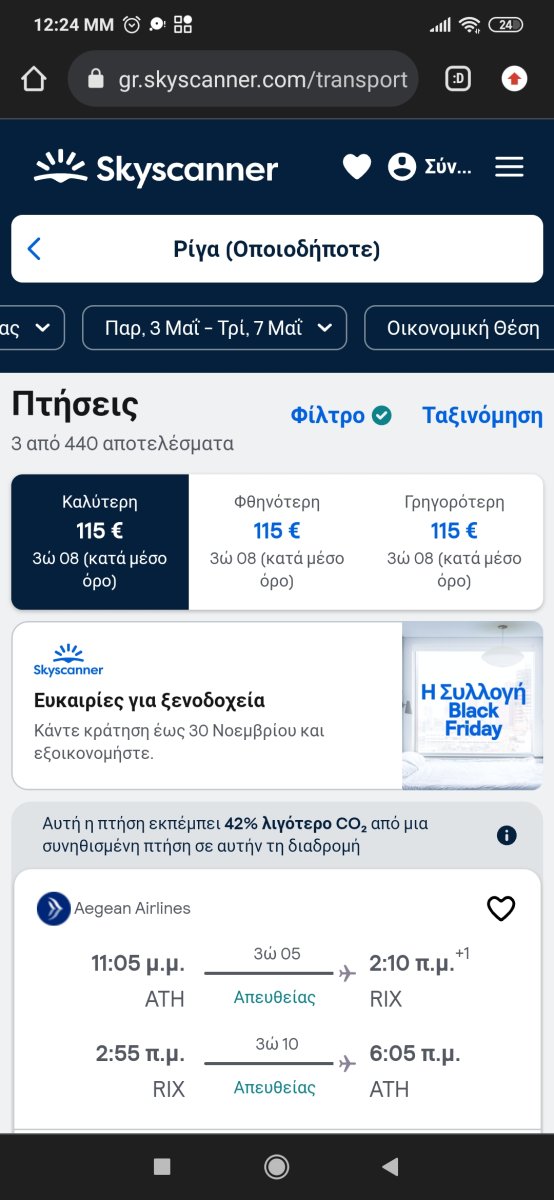 Ας πούμε αυτό, τετραήμερο και άβολες ώρες για τους περισσότερους. Ίσως υπάρχει ακόμα. Προτιμήσαμε Ιούλιο με airBaltic.