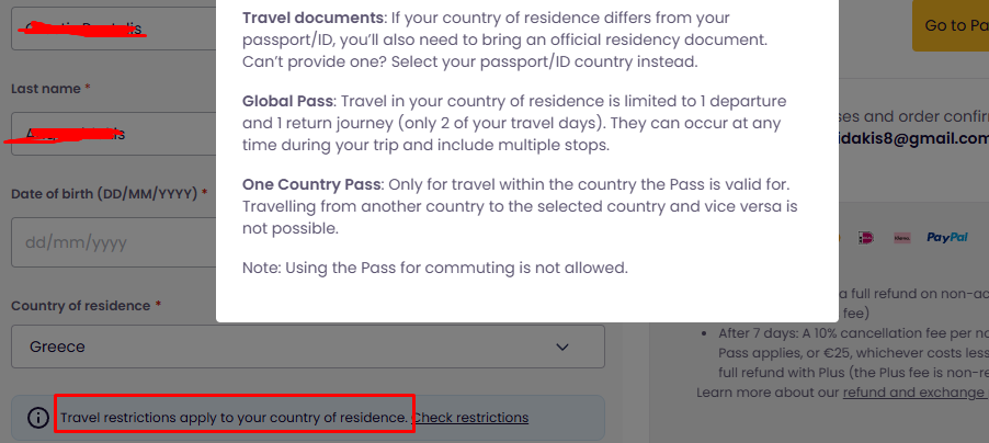 Γιαυτό ανέβασα και το "Check restrictions".το "Travel restrictions apply to your country of residence. Check restrictions" το βγάζει οποιαδήποτε χώρα και αν επιλέξεις. Πάτα save details απο κάτω και στη συνέχεια go to payment. Εμένα με αφήνει κανονικά.