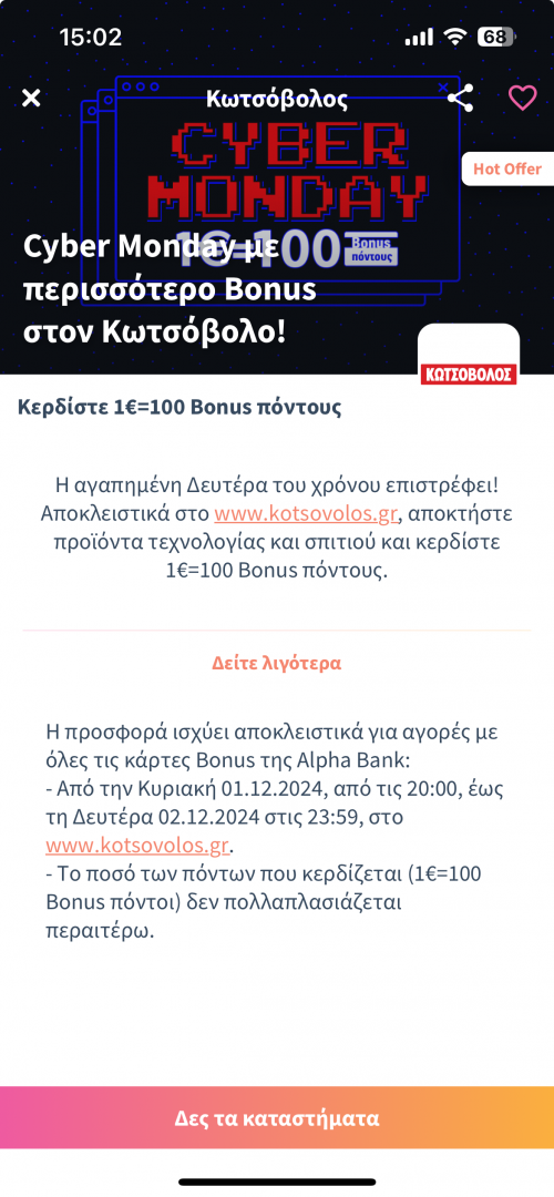 Δοκίμασε να κάνεις ρεσταρτ την εφαρμογή και δες αν υπάρχει ακόμα. Στο τηλέφωνο δεν το έχω δει ακόμα.Από iphone στην εφαρμογή bonus εμφανίζεται εδώ και ώρες