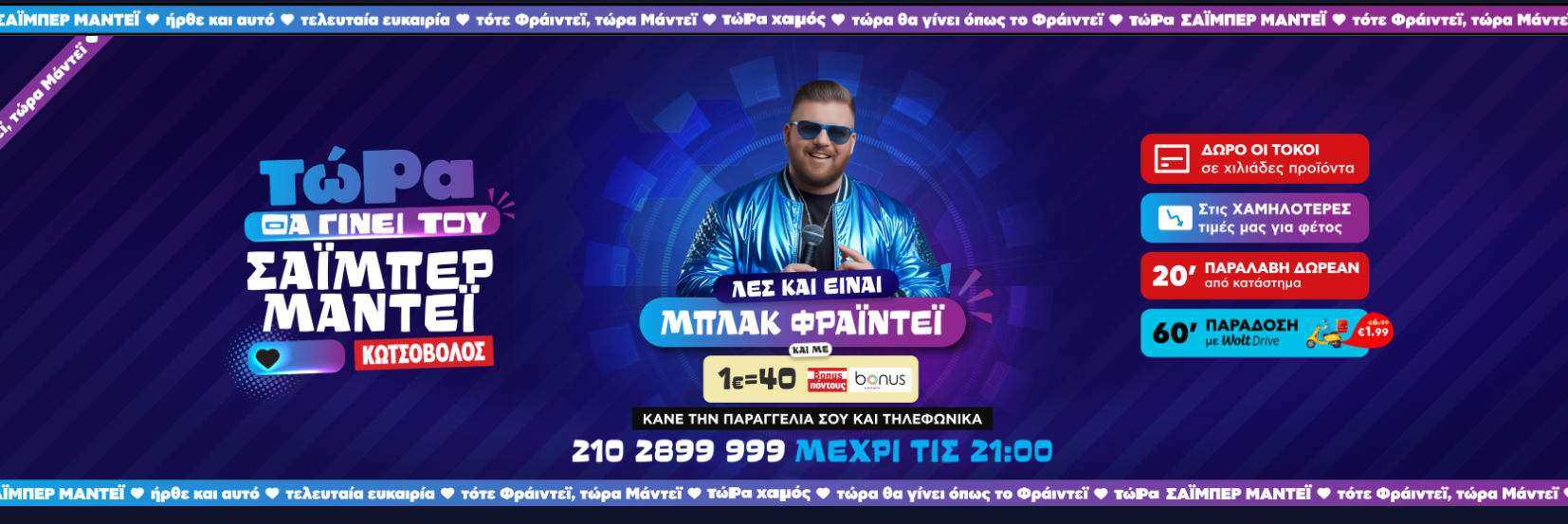 τόσος ντόρος για το τίποτα η διαφήμιση έγινε η ξενέρα έμεινε. Ευτυχώς που πρόλαβα το Χ100 για τη bosch που είχε μέχρι χτες. Τώρα ότι και να στείλεις δε λέει τίποτα πολλές φορές ανακοινώνεται και τιμή και αποσύρεται μετά από λίγες ώρες και βγαίνει μια ανακοίνωση ότι έγινε λάθος. Άλλωστε η ανακοίνωση δεν έτρεχε όσο έτρεχε η προσφορά είναι κατέβει