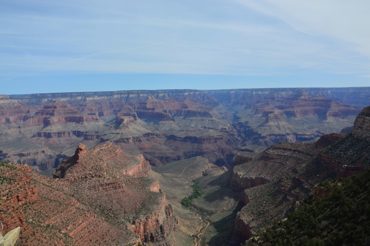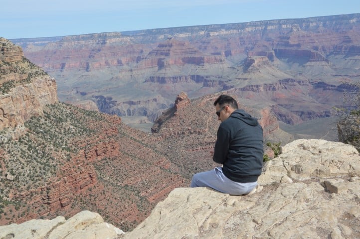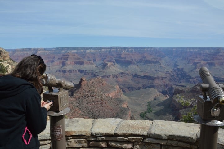 Έχουμε αποφασίσει τα κατέβουμε σε όλα τα view points. Το κάθε ένα έχει ξεχωριστή οπτική επαφή με το φαράγγι, από κάποια φαίνεται και ο ποταμός Colorado. Αφού χαρούμε κάθε εικόνα που μας χαρίζει το αχανές τοπίο, αφού ακούσουμε τους ήχους του Grand Canyon και αφού βγάλουμε πάρα πολλές φωτογραφίες επιστρέφουμε στη βάση μας για φαγητό.