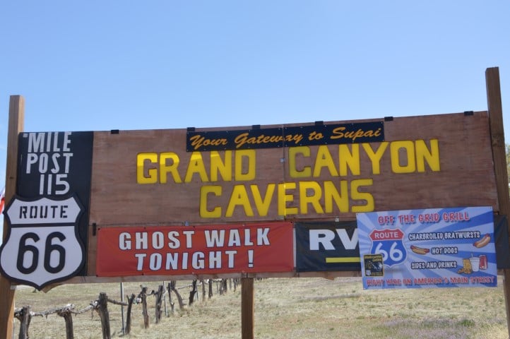 Επόμενη στάση σε μια μικρή επαρχιακή πόλη, το Seligman. Διάφορα μαγαζιά δεξιά και αριστερά του δρόμου είχαν επενδύσει στη νοσταλγία για τον route 66. Τιμήσαμε σπιτικά muffin και προχωρήσαμε προς στις Grand Canyon caverns . Σε αυτές τις σπηλιές λέγεται πως το 1927 βρέθηκαν δυο ανθρώπινοι σκελετοί από την προϊστορική περίοδο. Με την αφορμή αυτή περίπου το 1930 οι Αμερικάνοι πλήρωναν εισιτήριο για να πάνε να δουν τις σπηλιές. Σήμερα υπάρχει επιλογή εκτός από την κλασική περιήγηση να κάνεις και ghost tour. Σκεπτόμενοι πως ο χρόνος μας είναι περιορισμένος και αφού το όλο σκηνικό ήταν άκρως τουριστικό και κακόγουστο φεύγουμε. Τελευταία πολύ μικρή παράκαμψη η Chloride mining town. Ιδρύθηκε το 1860 και σήμερα είναι άλλη μια τουριστική επιλογή για τους διερχόμενους οδηγούς που πηγαίνουν στο Las Vegas.
