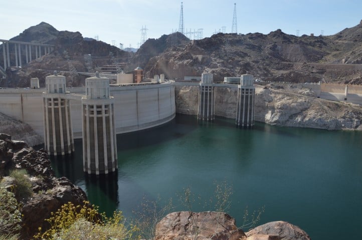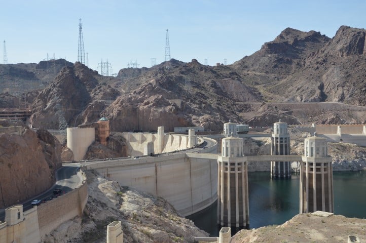 Λίγο πριν βγούμε από τα σύνορα της Arizona και περάσουμε στην Nevada συναντάμε το Hoover Dam. Εδώ έχει κατασκευαστεί ένα τεράστιο φράγμα για να συγκρατεί τα νερά του Colorado river, να υδροδοτούνται οι γύρω περιοχές με κυριότερη το Vegas, αλλά και να παράγει υδροηλεκτρική ενέργεια. Επειδή όμως βρισκόμαστε στην Αμερική το φράγμα το εκμεταλλεύονται και τουριστικά. Υπάρχουν tour που σε ξεναγούν στα έγκατα του και θα ήταν ενδιαφέρον να δούμε τις τεράστιες υδροηλεκτρογεννήτριες. Δώσαμε, όμως, προτεραιότητα στο θέατρο που μας περιμένει και αρκεστήκαμε στο να διασχίσουμε την κορυφή του φράγματος με το αμάξι, να το χαζέψουμε από ψηλά και να τραβήξουμε φωτογραφίες, κάνοντας μια σύντομη στάση.