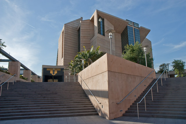 Επόμενη στάση, το μουσικό κέντρο της πόλης. Μια όμορφη πλατεία με σιντριβάνια, και δίπλα σ’ αυτά, τα 4 κτήρια του music center: το Ahmanson Theatre (κανονικό θέατρο με παραστάσεις a-la west end, broadway κλπ), το Mark Taper Forum (ημικυκλικό θέατρο με άμεση επαφή ακροατηρίου – κάτι σαν σαιξπηρικό), το Dorothy Chandler Pavilion (όπερα), και το Walt Disney Concert Hall (αίθουσα συναυλιών). Το τελευταίο είναι μάλιστα ένα πολύ εντυπωσιακό κτήριο ακανόνιστου σχήματος του Frank Dehry (έχει φτιάξει και το αρκετά παρεμφερές σε όψη κτήριο του μουσείου Guggenheim στο Bilbao).