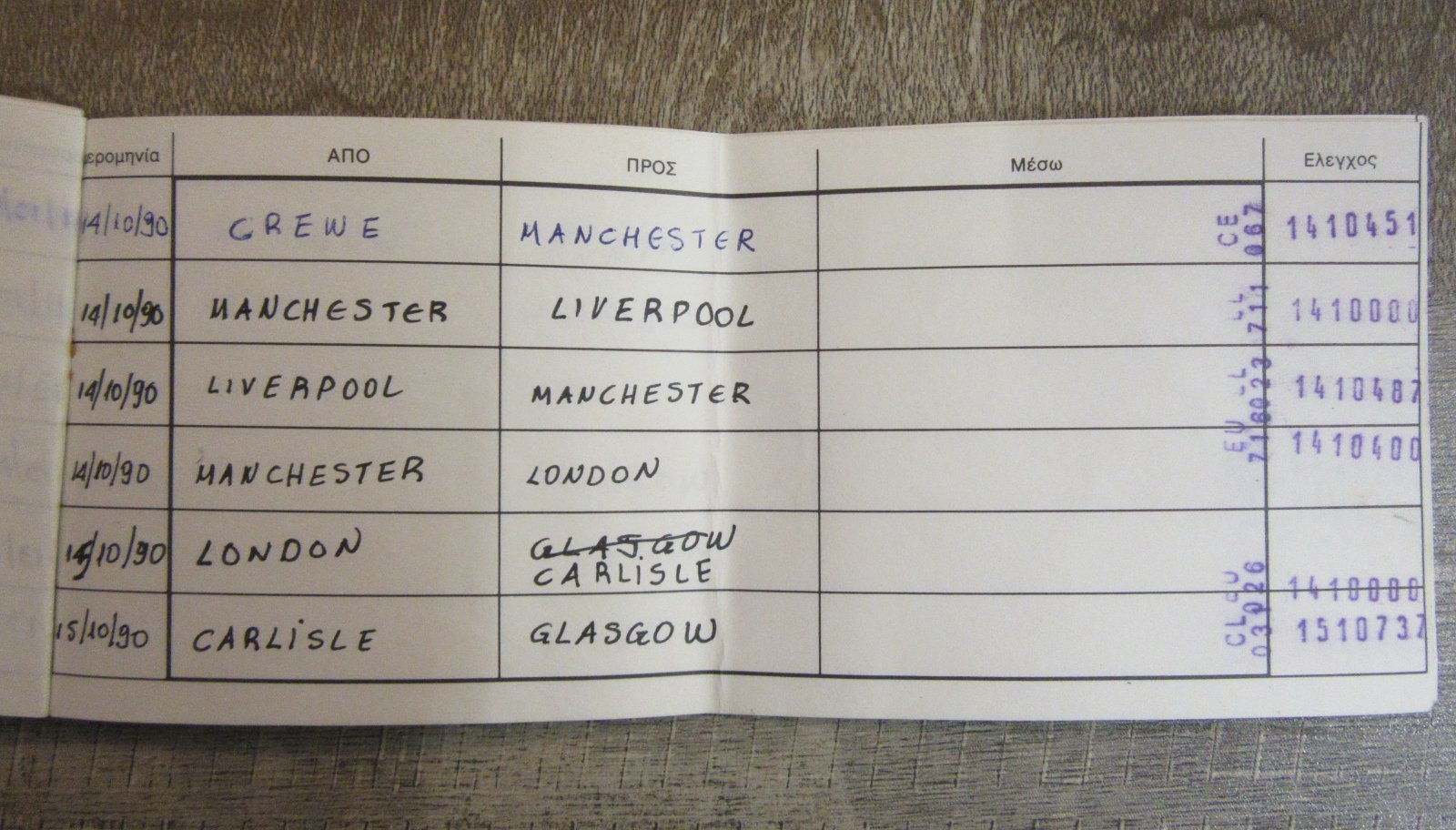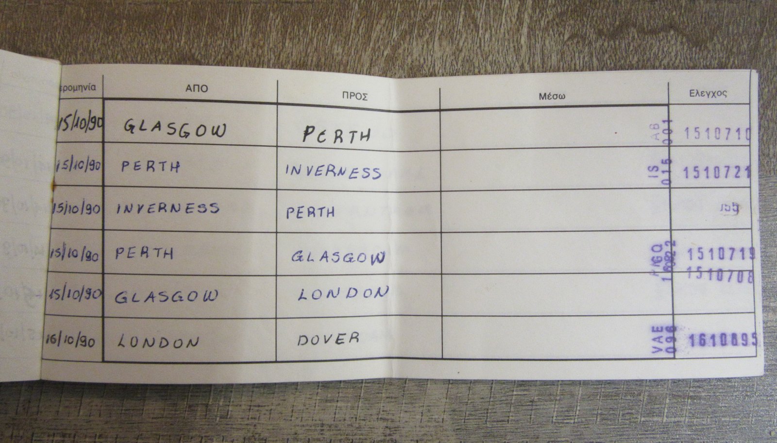 Το απόκομμα του εισιτηρίου, που δείχνει τις διαδρομές που κάναμε στις 15/10/90…..!!!