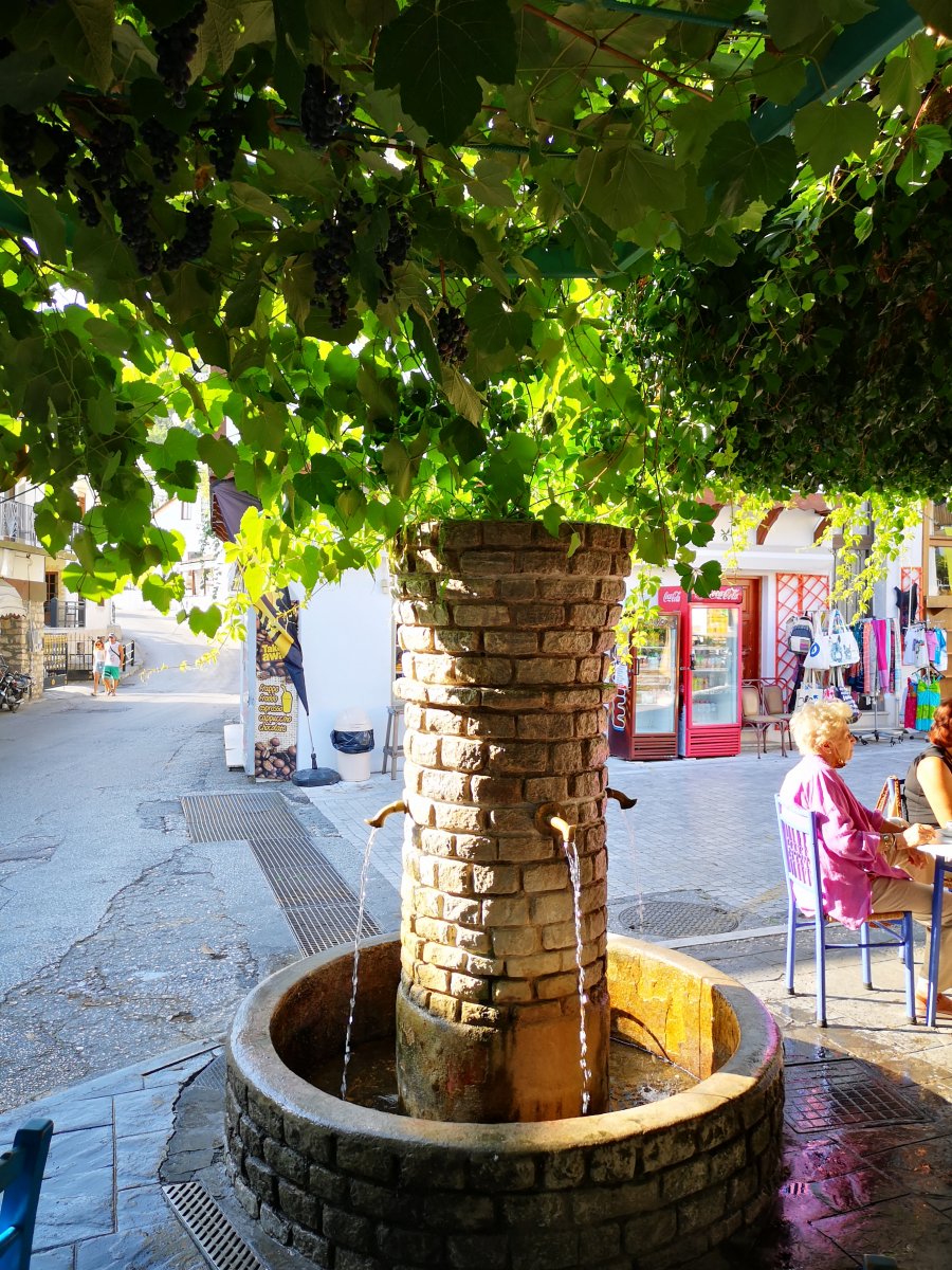 εμεις καφεδάκι εδώ, στην κεντρική και ηλιόλουστη πλατεία της Παναγιάς Θάσου κάτω από δροσιά και με ήχους από δροσερά νερά!