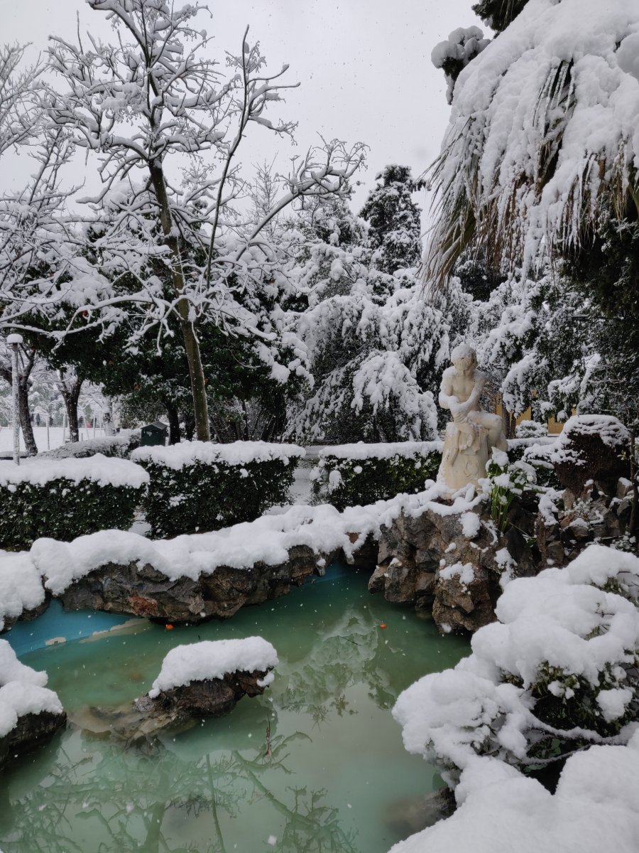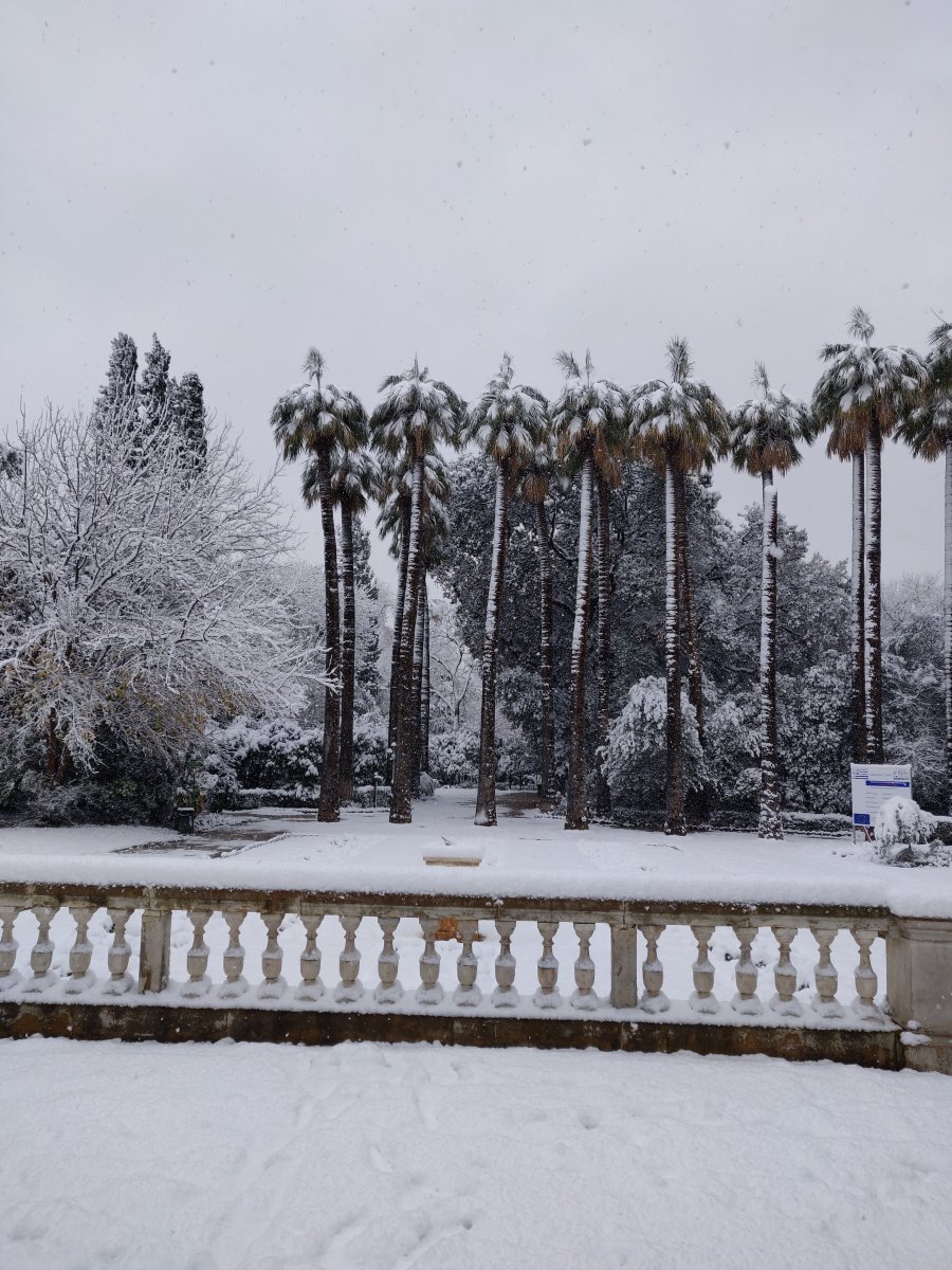 Είναι όμορφα αλλά πολλά κλαδιά είναι σπασμένα, αφού δεν άντεξαν το βάρος του χιονιού. Και συνεχίζει να χιονίζει οπότε θα σπάσουν κι άλλα.