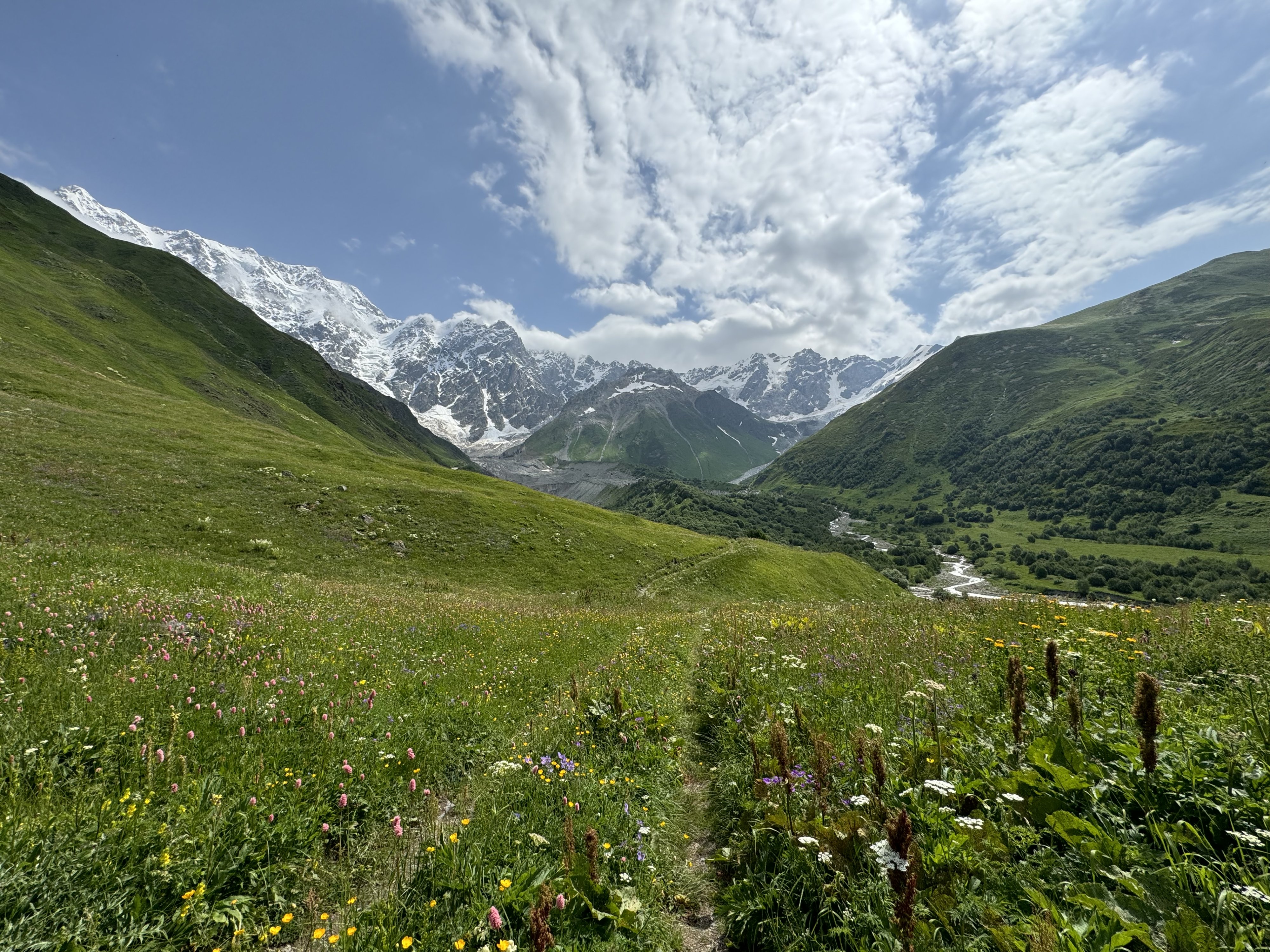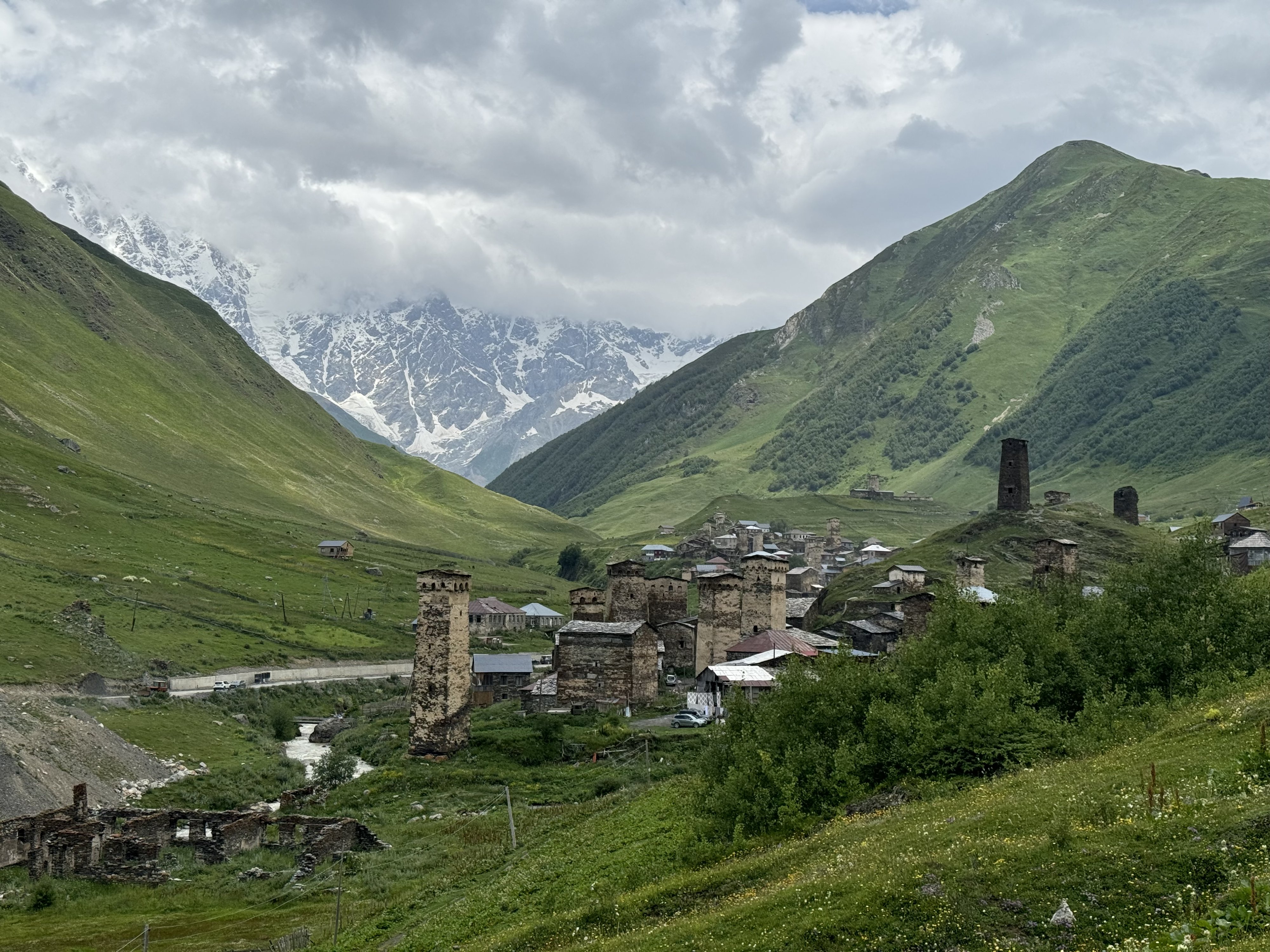Μεγαλειώδες τρεκ από το Ushguli προς τον φοβερό Καύκασο: κορυφή Shkhara, η ψηλότερη της χωρας στα 5200m και από πίσω Ρωσία. Απίθανο Άνω Σβανετι! Στη τελευταία φωτό το απίθανο χωριό μας.