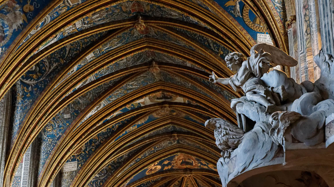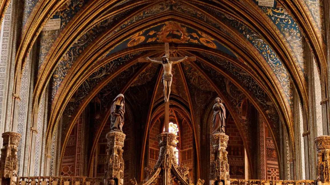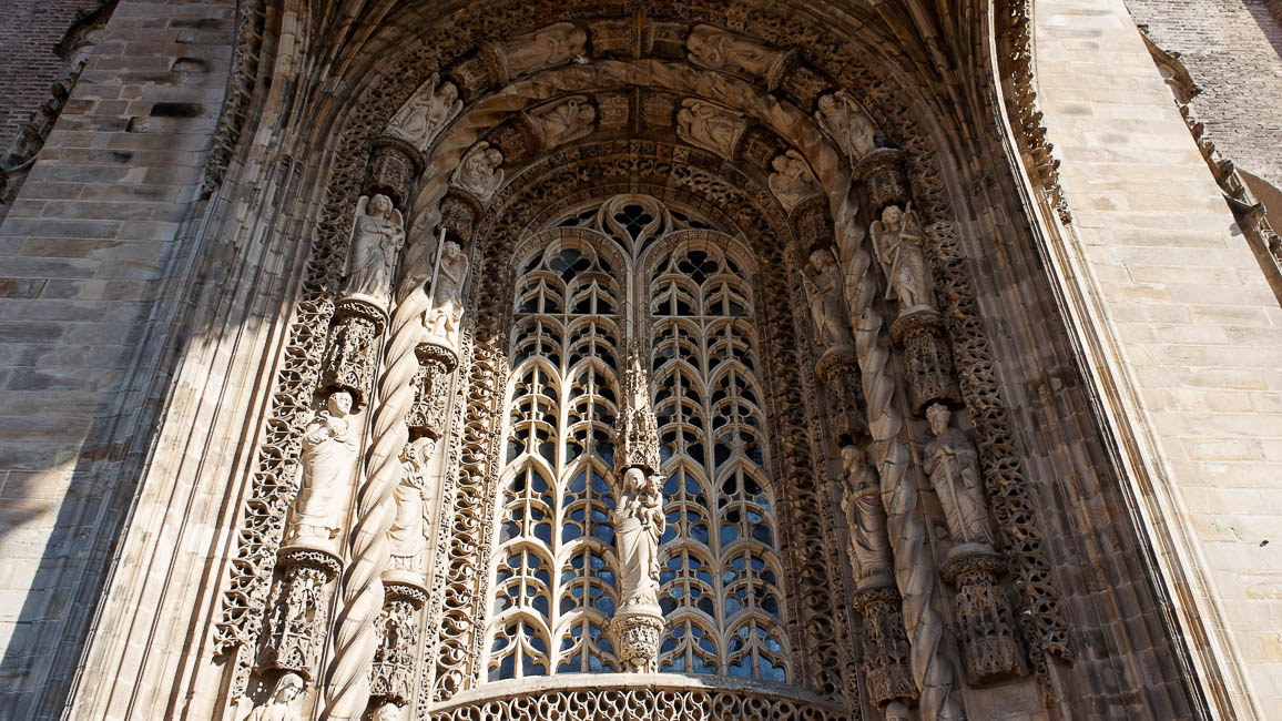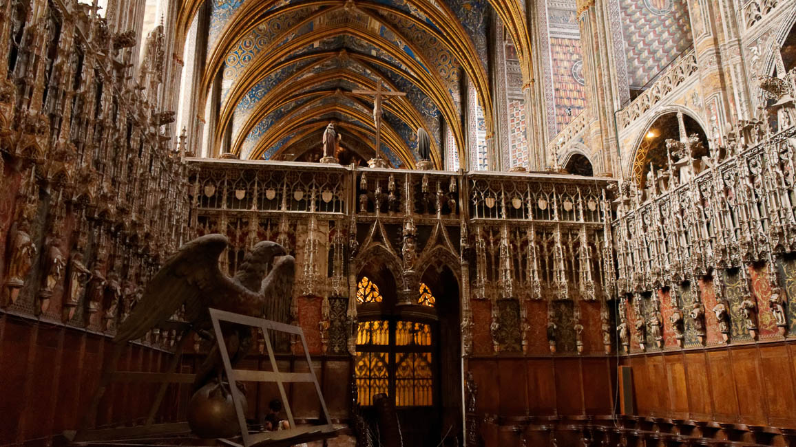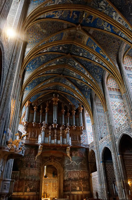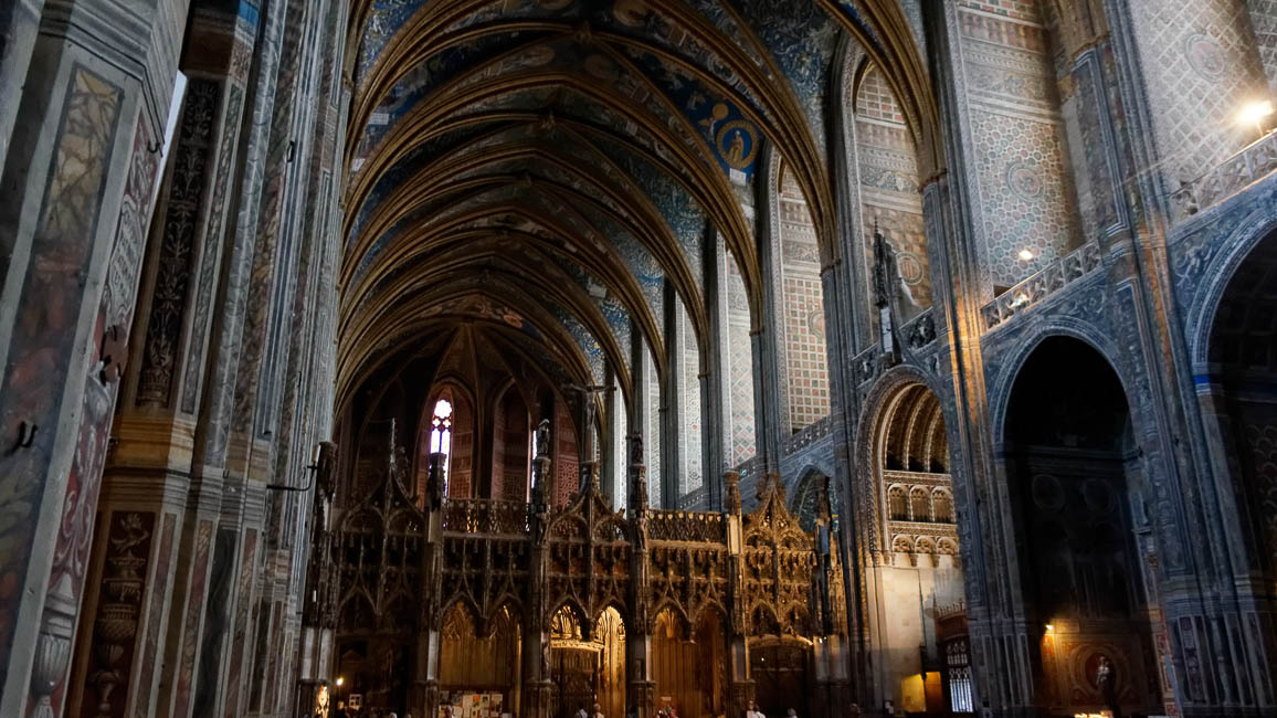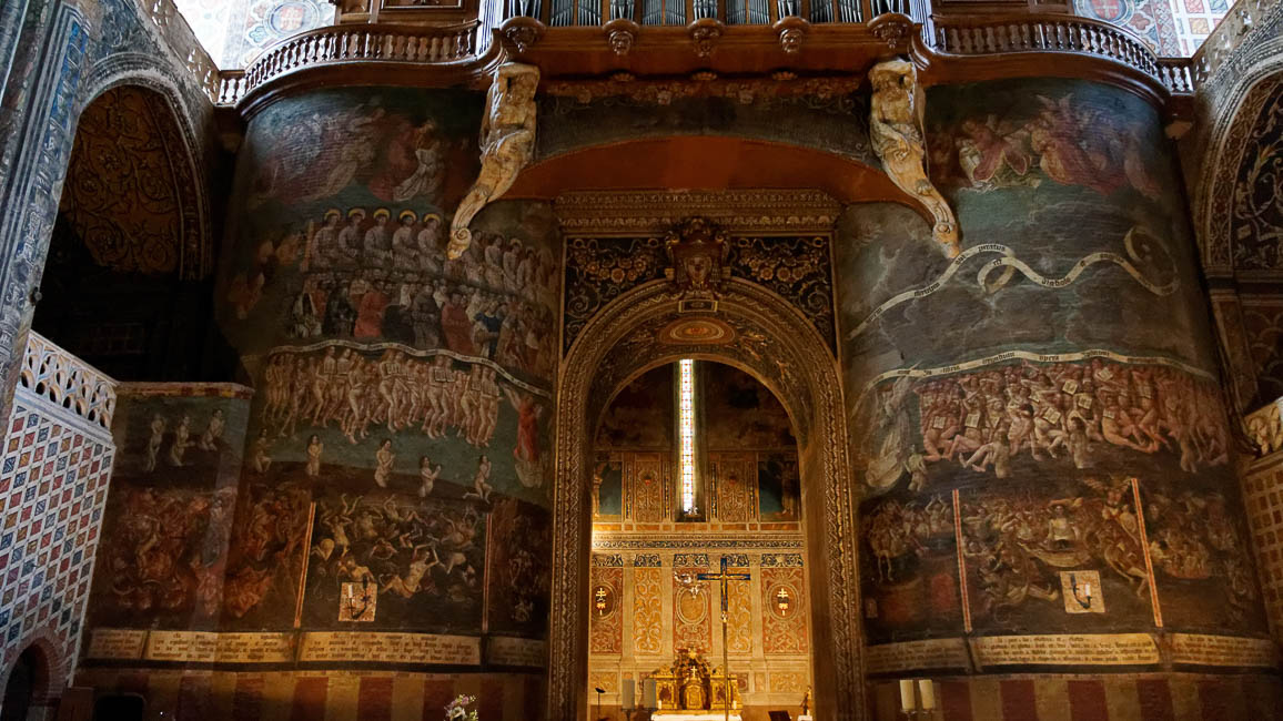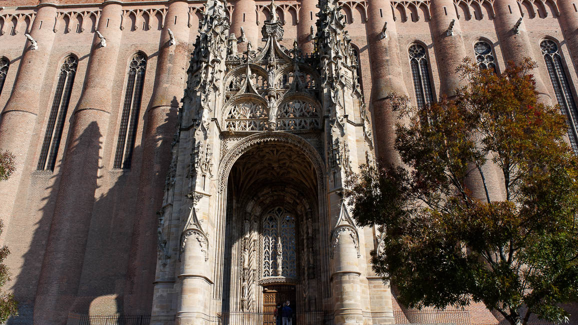 Η πρώτη στάση μας έγινε στον καθεδρικό ναό Sainte Cécile, ένα αριστούργημα γοτθικού ρυθμού που χτίστηκε μεταξύ του 13ου και 15ου αιώνα, σαν επιβεβαίωση της παπικής εξουσίας μετά τις αναταραχές της αίρεσης των Καθαρών. Αυτοί ήταν μια θρησκευτική σέχτα με χριστιανικές ρίζες κι ανάμεικτα στοιχεία Γνωστικισμού και Μανιχαϊσμού, που τους κατέσφαξαν οι σταυροφόροι.