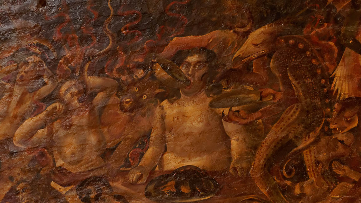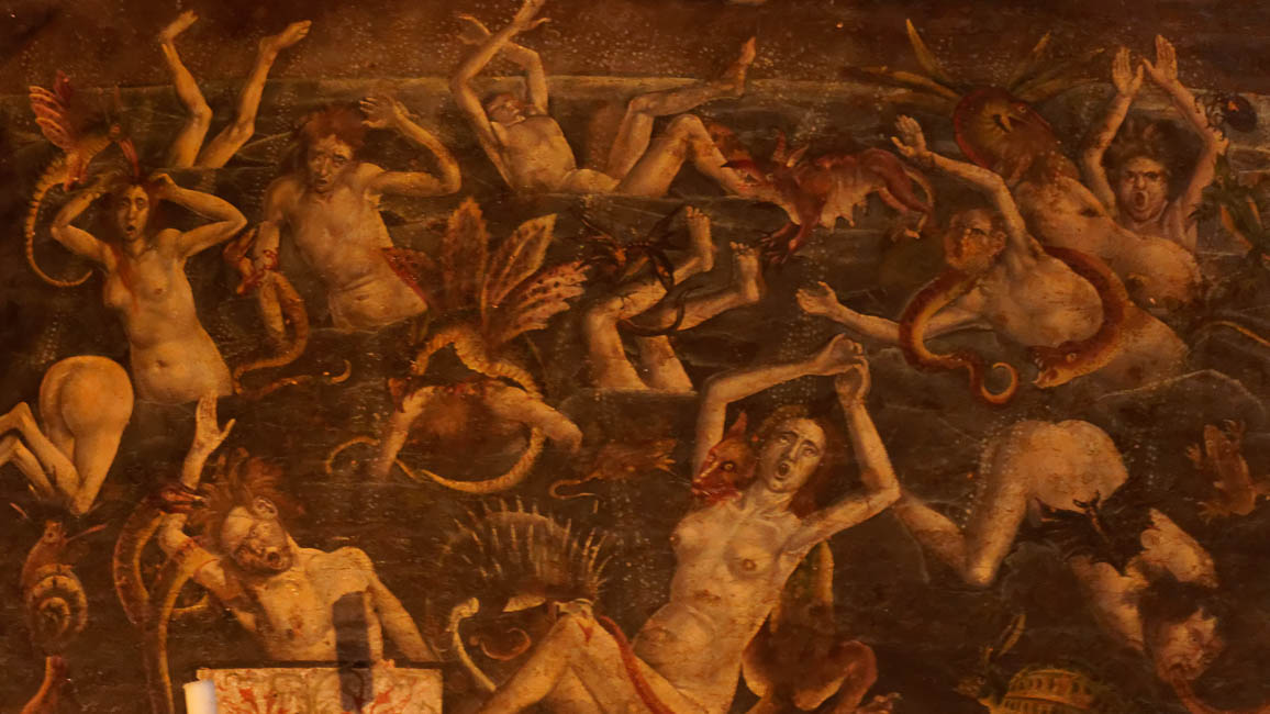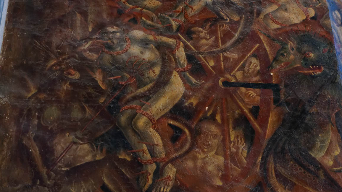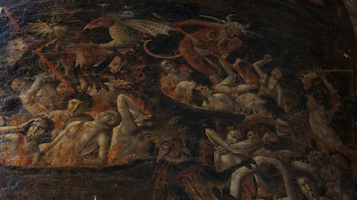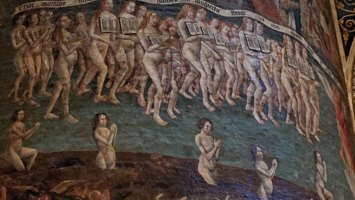Ηταν η αναπαράσταση της “Τελικής Κρίσης” που κοσμεί το σύνολο του δυτικού τοίχου του καθεδρικού ναού μπροστά από το ιερό. Κόλαση και Παράδεισος, άγγελοι αλλά και δαιμόνια σ’όλες τις μορφές να κατασπαρασσουν τις σάρκες των αμαρτωλές. Έμπνευση που παρέπεμπε έντονα στον αγαπημένο μου Jeronymus Bosch, αλλά και σε αντίστοιχες απεικονίσεις βυζαντινής αγιογραφίας.