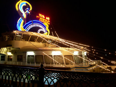 Η θέα τριγύρω ήταν εντυπωσιακή γιατί υπήρχαν μεγάλα κτίρια και φώτα. Περνώντας στο εσωτερικό του ποταμόπλοιου, διαπιστώσαμε με έκπληξη, ότι καζίνο δεν υπήρχε, γιατί είχε σταματήσει πριν έναν - δύο μήνες να λειτουργεί. Παρ' όλα αυτά, επειδή θέλαμε να εξερευνήσουμε τον χώρο, αποφασίσαμε να καθήσουμε για ένα drink.