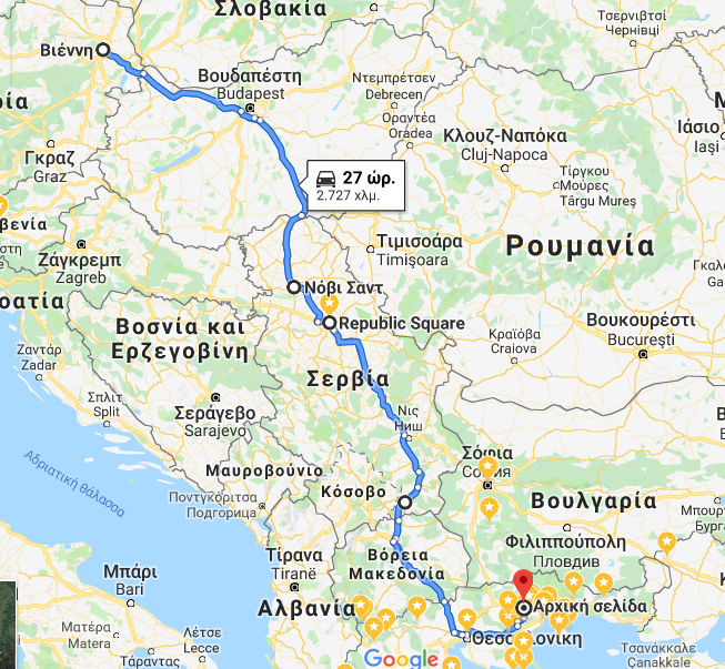 Ξεκινήσαμε πρωί, γύρω στις 8,30 για να καλύψουμε με άνεση τα πρώτα 741 χλμ της διαδρομής μας. Επέλεξα να αποφύγω τη διαδρομή διαμέσου της Βουλγαρίας, μη ξεχνώντας την περσινή μας ταλαιπωρία αλλά και τις αναφορές φίλων που έλεγαν ότι η διαδρομή από τα Σκόπια είναι πιο εύκολη αν και πιο μακρινή. Και είχαν δίκιο. Οδικό δίκτυο πολύ καλό και στις δύο χώρες πλην της Ελλάδας, έλεγχοι στα σύνορα σε λογικά πλαίσια, δίχως περίεργες καθυστερήσεις, πυκνό δίκτυο (ΣΕΑ) Σταθμών Εξυπηρέτησης Αυτοκινήτων. Τα διόδια εντός Σκοπίων πληρώνονται με ευρώ, με κόστος από 1 ως 2 ευρώ. Στη δε Σερβία, πληρώνεις ανάλογα τα χιλιόμετρα που έχεις κάνει ( κι εδώ με ευρώ), παίρνεις το χαρτάκι από το πρώτο κιόσκι που βρίσκεις και πληρώνεις λίγο πριν την έξοδο των τριων μεγάλων τους πόλεων. Λίγο πιο ακριβά από πέρσι αλλά με συνεχείς παρεμβάσεις, οι δρόμοι τους βελτιώνονται σταθερά. Όλα τα κομμάτια είναι διπλής κατεύθυνσης, σε αντίθεση με ένα τελευταίο κομμάτι στην χώρα μας, πριν τους Ευζώνους, το οποίο δεν μπορώ να καταλάβω γιατί δεν εκσυγχρονίζεται.
