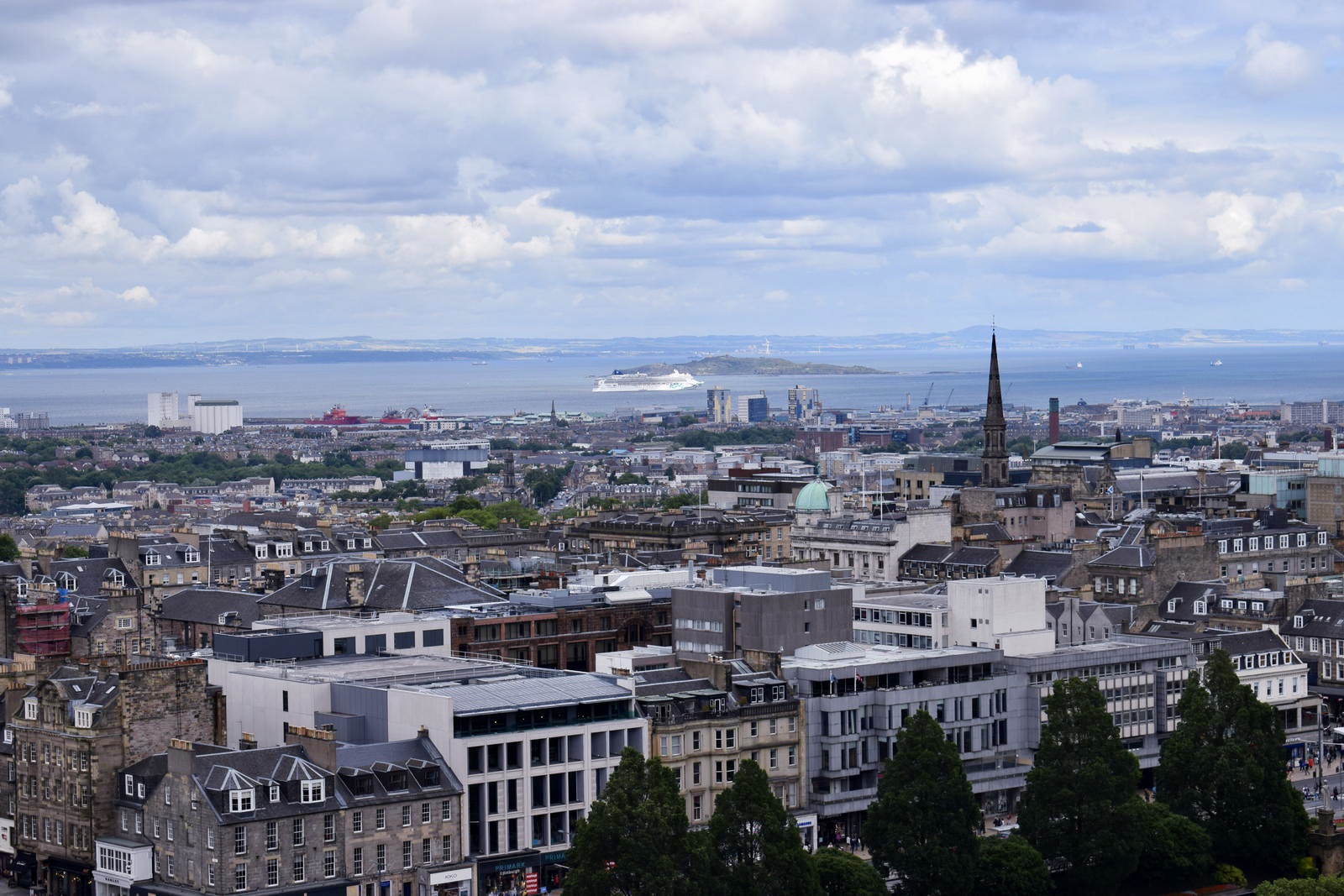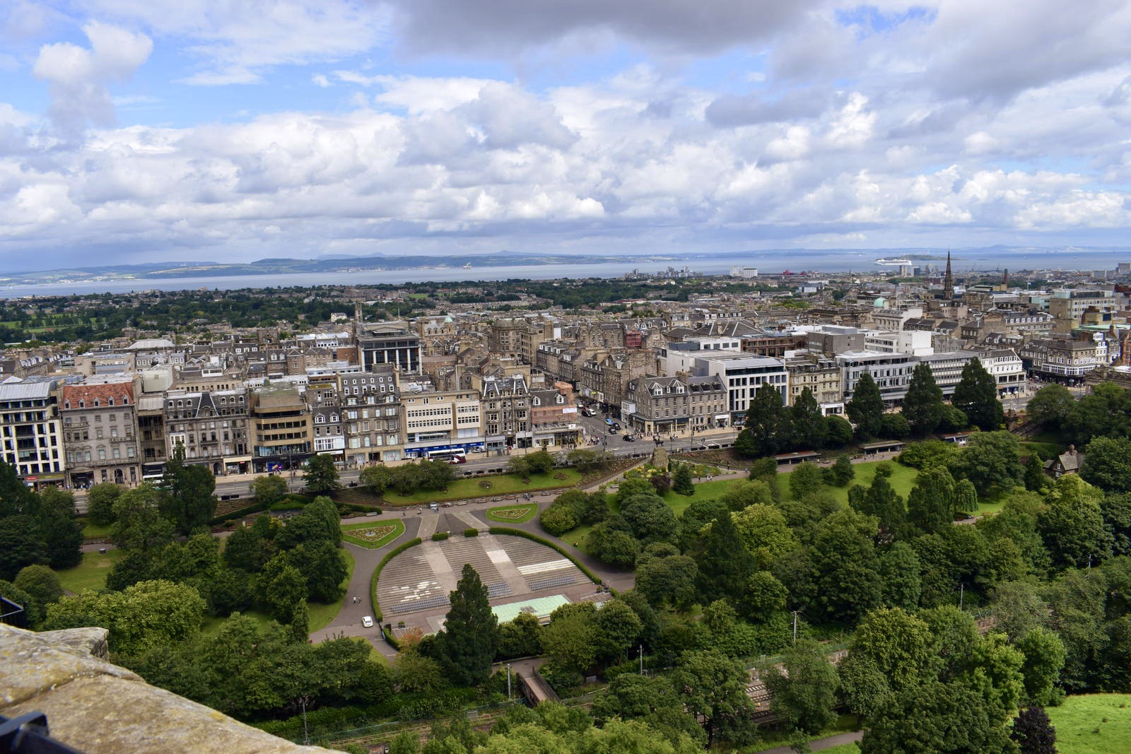 Το βλέμμα του επισκέπτη με τη βοήθεια της μεσημεριανής λιακάδας που πότε-πότε συρρικνώνεται από τα πλανώμενα στον ορίζοντα σύννεφα, εύκολα, αγναντεύει έως και το λιμάνι του Leith.