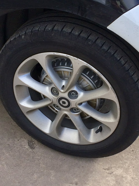 Κἀποτε, τα καταφέραμε και φθάσαμε. Όμως εκεί, σταθήκαμε και περιμέναμε τη ¨λυπητερή αφού λέγαμε πως είχαμε θέμα με την πίσω αριστερή ζάντα που την είχα στριμώξει εν αγνοία μου μερικές φορές στο ρείθρο των πεζοδρομίων.