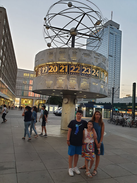 Χορτάτοι λοιπόν φτάνουμε στο Βερολίνο το μεσημέρι.Αφού τακτοποιηθήκατε στο σπίτι που βρίσκεται λίγο έξω από την πόλη σε μια ήσυχη περιοχή με το αυτοκίνητο πάμε στο κέντρο της πόλης.Υπόγειο πάρκινγκ κοντά στη πλατεία Alexanderplatz. Είναι Σάββατο βράδυ έχει πολύ ζέστη . Πρωτοφανές για το Βερολίνο και αν και βρισκόμαστε στο κεντρικότερο και πολυσύχναστο σημείο του Βερολίνου στην πλατεία Alexanderplatz δεν έχει καθόλου κόσμο.Εκεί βρίσκεται το Κόκκινο Δημαρχείο,ο Πύργος της τηλεόρασης που αποτελεί το ψηλότερο κτίριο της πόλης,που φτάνει τα 365 μέτρα,και είναι ορατός από όλα σχεδόν σημεία του Βερολίνου,το Ρολόι Διεθνούς Ώρας που εντοπίσαμε και την Αθήνα, και το Σιντριβάνι Διεθνούς φιλίας.