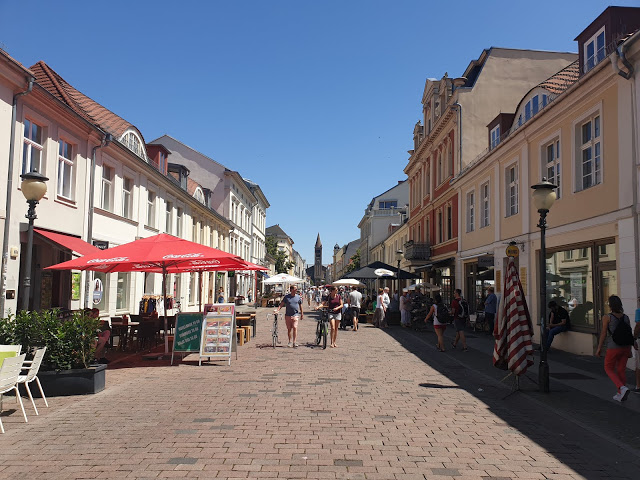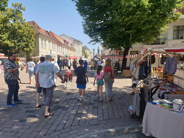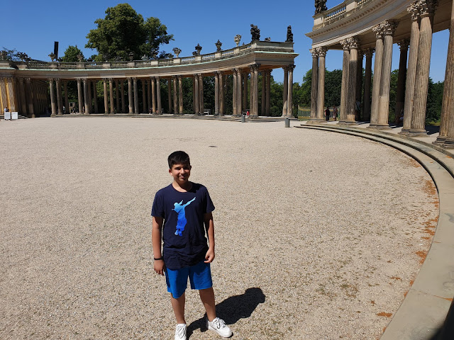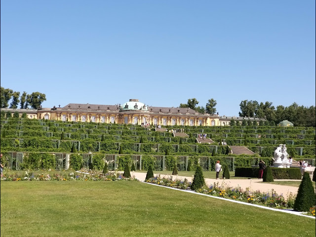 Είναι γεμάτο με κήπους,αμπέλια,πορτοκαλεώνες,αγάλματα,συντριβάνια και πάνω απ΄όλα με πολλά δέντρα.Εκεί χτίστηκε και το Ανάκτορο Σανσουσί που ήταν η θερινή κατοικία του Μεγάλου Φρειδερίκου της Πρωσίας.Η είσοδος στο πάρκο είναι ελεύθερη. Φεύγουμε από το πάρκο και πάμε στο κέντρο της πόλης.Περπατάμε στο κεντρικό πεζόδρομο που είναι πολύ εμπορικός και με πολύ κόσμο.Εκεί δοκιμάσαμε σε food street και το πρώτο μας παραδοσιακό λουκάνικο το λεγόμενο wurst με τις σάλτσες του και με τα όλα του.Πολύ νόστιμο και πολύ χορταστικό.
