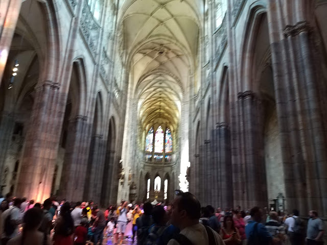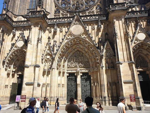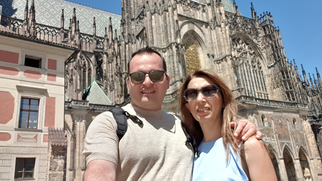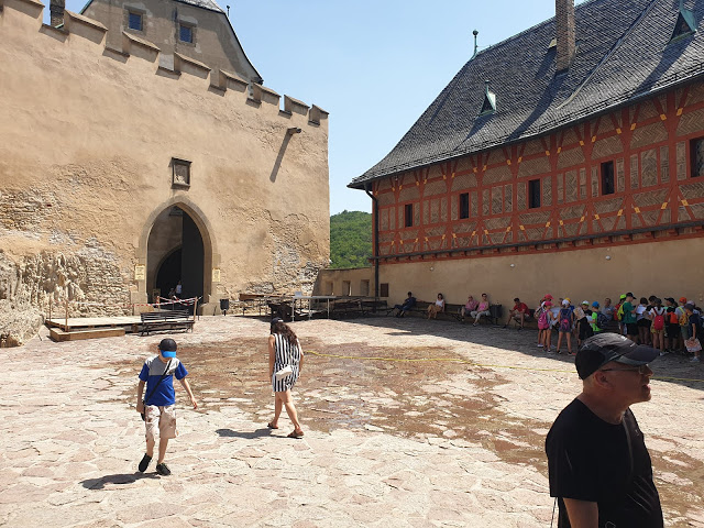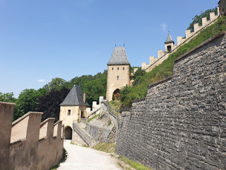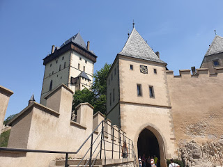 Πολύ κίνηση με πολλά φορτηγά.Ευτυχώς δεν κολλήσαμε πουθενά.Με μικρές καθυστερήσεις φτάσαμε στην Πράγα στις 13:00 το μεσημέρι. Πριν μπούμε στην πόλη, 40 χλμ πριν, επισκεφτήκαμε το κάστρο Καρλστειν.Το εντυπωσιακό γοτθικό κάστρο βρίσκεται μέσα στα πυκνά δάση της Βοημίας και στεφανώνει μια βραχώδη κορυφή που υψώνεται πάνω από τη κοιλάδα του ποταμού Μπεροούνκα.Οπότε για να φτάσουμε σε αυτό παρκάραμε σε πάρκινγκ που βρίσκεται 2 χλμ μακριά και με χρέωση 4 ευρώ για όλη τη μέρα.