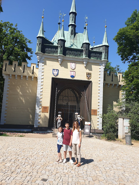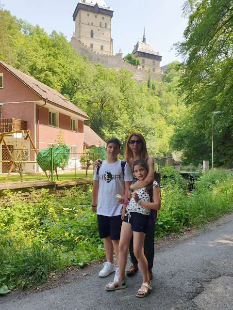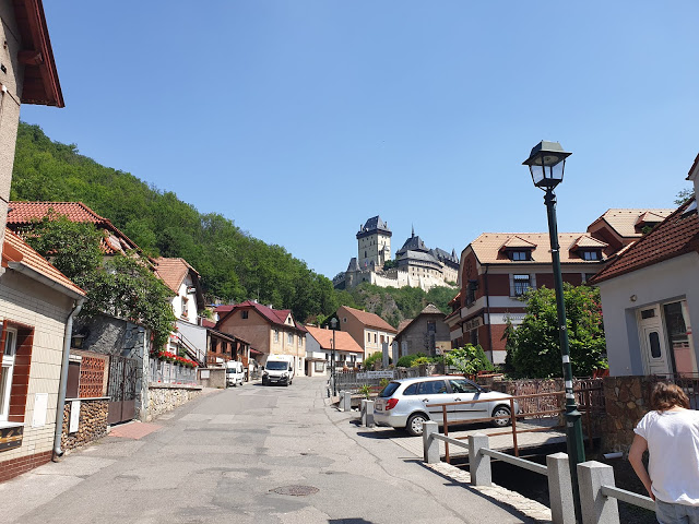 Από κει ανηφορίζοντας και διασχίζοντας ένα πολύ όμορφο χωριό γεμάτο από τουριστικά καταστήματα,φτάσαμε στο κάστρο.Αρκετά μεγάλο μέσα στο δάσος και έχει πολύ ωραία θέα προς την πόλη. Αποτελούσε την εξοχική κατοικία του βασιλιά Κάρολου Δ΄,αλλά φυλάσσονταν επίσης τα κοσμήματα του Στέμματος της Βοημίας και η συλλογή των ιερών λειψάνων κατά τη διάρκεια των Πολέμων των Ουσσιτών.
