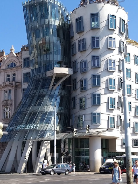 Από κει περπατώντας παραποτάμια που είναι μια πολύ ωραία διαδρομή φτάσαμε στο <<Σπίτι που χορεύει>>.Ονομάστηκε έτσι γιατί οι δύο πύργοι από τους οποίους αποτελείται μοιάζει με ζευγάρι χορευτών.Ο τσιμεντένιος πύργος παρουσιάζει τον χορευτή και ο γυάλινος την χορεύτρια.Στην ταράτσα του λειτουργεί γαλλικό εστιατόριο,ενώ οι χώροι του,ως επί τον πλείστον,φιλοξενούν γραφεία εταιρειών.