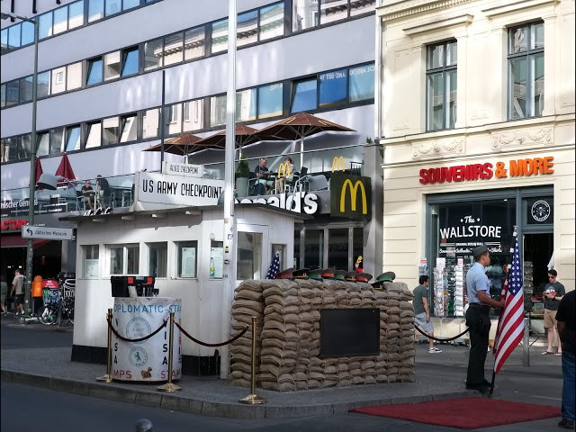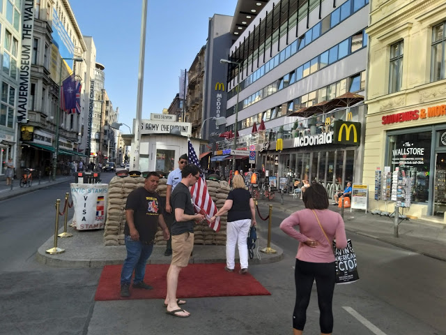 Φεύγουμε από τα μουσεία και πάμε στο σημείο ελέγχου Τσάρλι.Το Checkpoint Charlie έγινε σύμβολο του Ψυχρού Πολέμου,αντιπροσωπεύοντας τον διαχωρισμό Ανατολής και Δύσης.Το αυθεντικό Σημείο Ελέγχου Τσάρλι,αφαιρέθηκε μετά την πτώση του Τείχους.Στο ίδιο σημείο όμως ,υπάρχει αναπαράσταση του αμερικανικού φυλακίου που έγινε τουριστικό αξιοθέατο.Χωρίς ιδιαίτερο ενδιαφέρον απλώς για μια βόλτα και μια φωτογραφία με τον φύλακα μπροστά στο φυλάκιο και αυτη από μακριά γιατί αν θες να βγάλεις φωτογραφία μαζί του πρέπει να πληρώσεις.