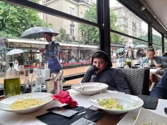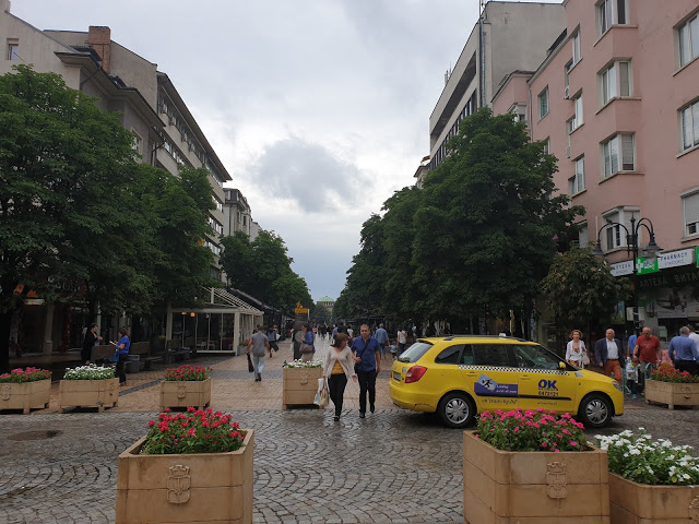 Ο καιρός συννεφιασμένος.Πληρώσαμε την κλίση σ΄ένα change αντί σε τράπεζα επειδή δεν δεχόταν ευρώ και ξεκινήσαμε για Σόφια.168 χλμ.Μέχρι τα σύνορα της Βουλγαρίας πληρώσαμε μόνο μια φορά διόδια στη Σερβία 2 ευρώ.Περάσαμε τα σύνορα Σερβία -Βουλγαρία με μια καθυστέρηση 30 λεπτών.Μπήκαμε στη Σόφια και είναι συννεφιασμένη.Τακτοποιηθήκατε στο σπίτι και πάμε βόλτα στο κέντρο της Σόφιας στη λεωφόρο της Βίτοσας(Vitosha)που είναι η εμπορική καρδιά της πόλης με δεκάδες καταστήματα, καφέ και εστιατόρια παραταγμένα στο πλακόστρωτο.Είναι πολύ όμορφα αλλά βρέχει πολύ δυνατά και δεν μπορούμε να συνεχίσουμε τη βόλτα μας.