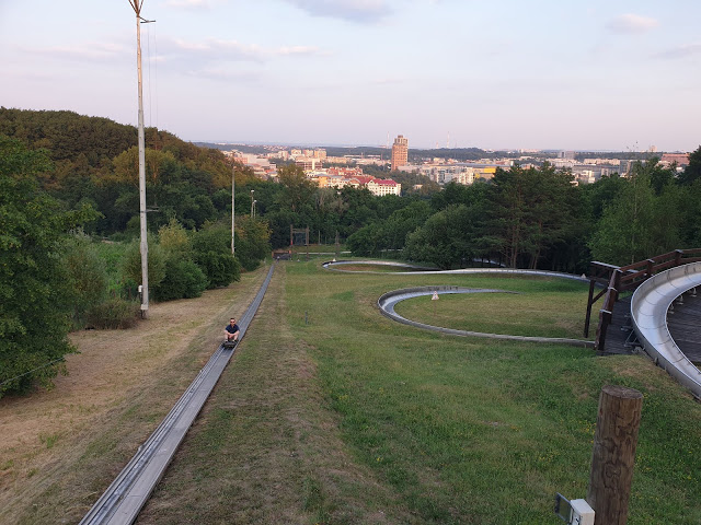 Μετά από λίγη ξεκούραση αργά το απόγευμα πάμε σ΄ ένα cafe-restaurant λίγο έξω από τη πόλη σ΄ ένα λόφο με καταπληκτική θέα.Το κατάστημα λέγεται Bobova Draha Prosek και αυτό που το κάνει ξεχωριστό είναι η βόλτα με ελκηθρο (Bobsleigh ) . Πάνω σε έλκηθρο που κινείται σε ράγες κάνεις μια μεγάλη ξεχωριστή βόλτα.Είναι πολύ διασκεδαστικό και σχετικά φθηνό αφού μπορείς να αγοράσεις όσες βόλτες επιθυμείς.Οι υψηλές ταχύτητες και οι συναρπαστικές στροφές το κάνουν μοναδικό.Είναι καλό για μεγάλους και μικρούς.