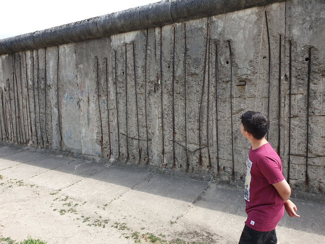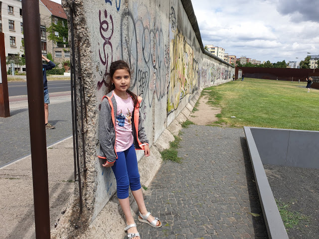 Σήμερα η θερμοκρασία έχει πέσει στους 17-20 βαθμούς και φυσάει παγωμένος αέρας. Ξεκινήσαμε τη μέρα μας από το τείχος του Βερολίνου.Ένα κομμάτι που έχουν κρατήσει ως μνημείο πολύ κοντά στο κέντρο της πόλης.Επισκεφτήκαμε και το μουσείο που βρίσκεται εκεί που μέσα από φωτογραφίες και ψηφιακά μέσα μας δείχνει όλη την ιστορία και την πτώση του τείχους.