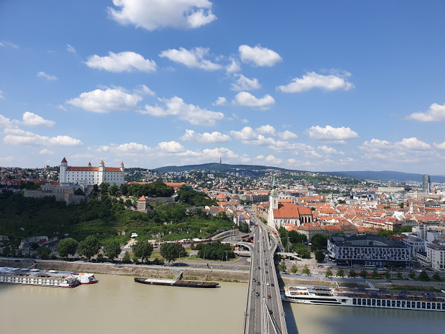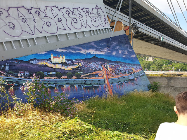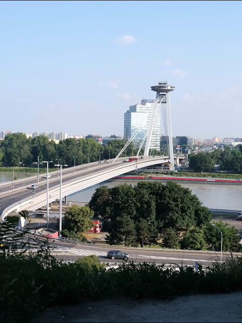 Πρώτη στάση,μεσημέρι πια,στο εμπορικό Aupark που δίπλα του βρίσκεται η μεγάλη γέφυρα που περνάει πάνω από το Δούναβη και ενώνει την παλιά με την καινούργια πόλη,τη συνοικία Petralka.Η SNP, όπως είναι το κανονικό της όνομα χτίστηκε τη δεκαετία το ΄70 και έχει μήκος στα 500 μέτρα. Διαθέτει ειδικό δρόμο για τους πεζούς,που βρίσκεται ένα επίπεδο κάτω από τον αυτοκινητόδρομο.