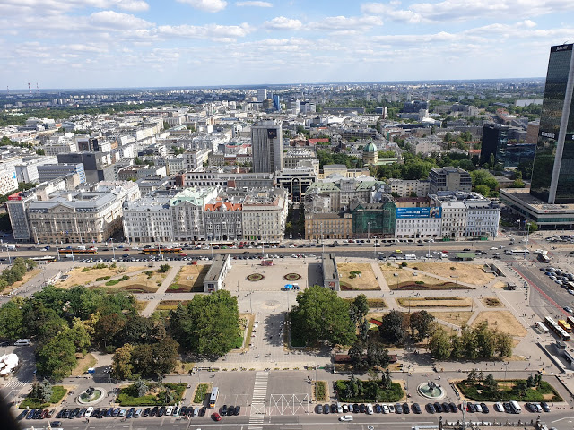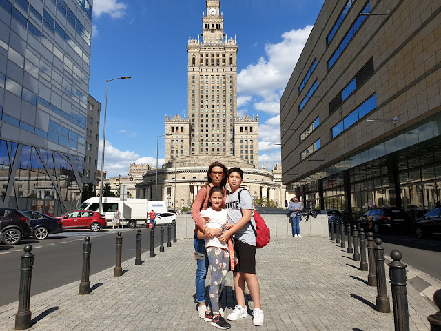 Επόμενη επίσκεψη στη νέα πόλη.Πράγματι εδώ όλα τα κτίρια είναι καινούργια με πολλούς ουρανοξύστες.Τεράστια εμπορικά κέντρα για όλα τα γούστα.Αυτό όμως που είναι πιο εντυπωσιακό και δεν σε αφήνει αδιάφορο είναι το Ανάκτορο των Τεχνών και Επιστημών.Είναι το ψηλότερο κτίριο της Πολωνίας με ύψος 230 μέτρων και έχει 42 ορόφους.Είναι ορατό από κάθε σημείο της πόλης.Χτίστηκε το 1955 ύστερα από παραγγελία του Στάλιν ,ως δώρο φιλίας της Σοβιετικής Ένωσης προς την Πολωνία.Φιλοξενεί το Μουσείο της Εξέλιξης και της Τεχνολογίας,τέσσερα θέατρα,οκτώ κινηματογραφικές αίθουσες.ένα πανεπιστήμιο και πολλά φεστιβάλ.Το πιο ενδιαφέρον για τους τουρίστες είναι μια πλατφόρμα στην βεράντα του 30ου ορόφου από όπου η θέα είναι απίστευτη και μπορείς να θαυμάσεις την πόλη.Για να ανεβούμε στον 30ο όροφο πληρώσαμε 20 ευρώ οικογενειακό εισιτήριο.