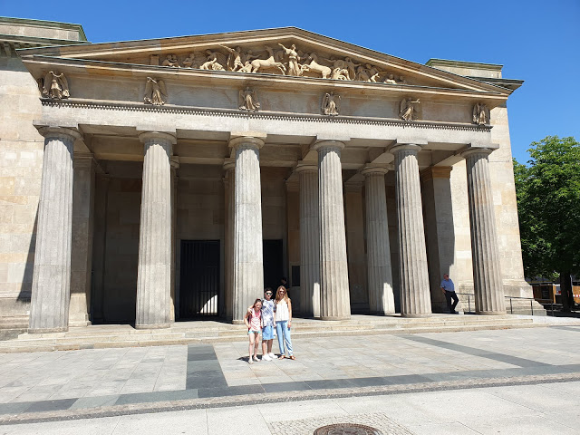 Η πιο ζεστή μέρα του χρόνου λένε οι Βερολινέζοι.Η θερμοκρασία φτάνει τους 38 βαθμούς κελσίου.Έτσι αποφασίσαμε να κινηθούμε σε εσωτερικούς χώρους δηλαδή σε μουσεία. Ξεκινήσαμε από το νησί των μουσείων.Πρόκειται για μια εκπληκτική τοποθεσία στην καρδιά του Βερολίνου, όπου και φιλοξενούνται 5 από τα σπουδαιότερα μουσεία της Γερμανικής πρωτεύουσας. Το νησί των μουσείων βρίσκεται στον ποταμό Spree και έχει χαρακτηριστεί ως Μνημείο Παγκόσμιας Κληρονομιάς από την Unesco.