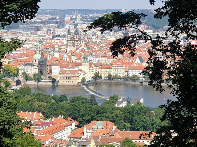 Ανεβήκαμε με το επίγειο τελεφερίκ στην κορυφή του λόφου Πετρίν πληρώνοντας οικογενειακό εισιτήριο 10 ευρώ.Μικρή και όμορφη διαδρομή μέσα στο πράσινο και πολύ όμορφη θέα προς την πλευρά του κάστρου. Στο λόφο βρίσκεται ο κήπος με τις τριανταφυλλιές, γνωστός ως κήπος των ρόδων.Είναι πολύ όμορφος και πολύ καλά φροντισμένος.Αυτό που κυριαρχεί είναι το παρατηρητήριο Petrin μια μεταλλική κατασκευή ,απομίμηση του πύργου του Άιφελ,πέντε φορές μικρότερη.