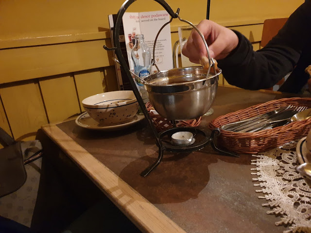 Από τα καλντερίμια που ξεκινούν στην άκρη της καταλήξαμε στην πλατεία της Παλιάς Πόλης που είναι γεμάτη με καφέ και εστιατόρια,τα οποία έχουν αναμμένες τις σόμπες υγραερίου λόγου του κρύου.Τριγύρω της τα πολύχρωμα κτίρια είναι χτισμένα σύμφωνα με τη μεσαιωνική αρχιτεκτονική και είναι πανέμορφα.Ο φωτισμός τόσο στην πλατεία όσο και στα σοκάκια της πόλης είναι χαμηλός και κάνει την ατμόσφαιρα πολύ ρομαντική σε συνδυασμό με τους καλλιτέχνες του δρόμου που παίζουν από βιολιά μέχρι και φλεγόμενες μπαγκέτες.Δειπνήσαμε σε ένα άκρως παραδοσιακό εστιατόριο το φαγητό έτσι και έτσι.Όλα τα μαγαζιά κλείνουν στις 11 το βράδυ.