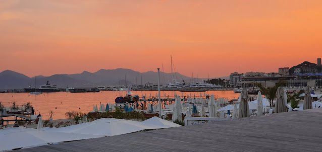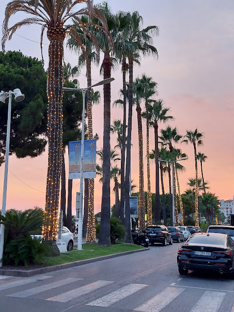 πεζόδρομο με τους φοίνικες, δίπλα στην παραλία ,με τα κομψά καφέ και τα πολυτελή ξενοδοχεία.