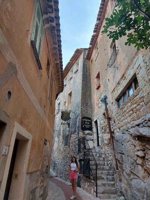 Το χωριό Eze βρίσκεται στη κορυφή ενός λόφου της Κυανής Ακτής.Δεν μπορείς να πλησιάσεις με το αυτοκίνητο ,και η διαδρομή από το χώρο στάθμευσης μέχρι το χωριό είναι αναφορική και λιγάκι μακρινή. Αξίζει τον κόπο όμως το περπάτημα, γιατί είναι πολύ όμορφο πέτρινο χωριό, με γραφικά μαγαζάκια,και πλακόστρωτα στενά δρομάκια που οδηγούν στην κορυφή του λόφου με εκπληκτική θέα στη Μεσόγειο.Περάσαμε και μια βόλτα μέσα από τη Νίκαια και επιστρέψαμε στις Κάννες.