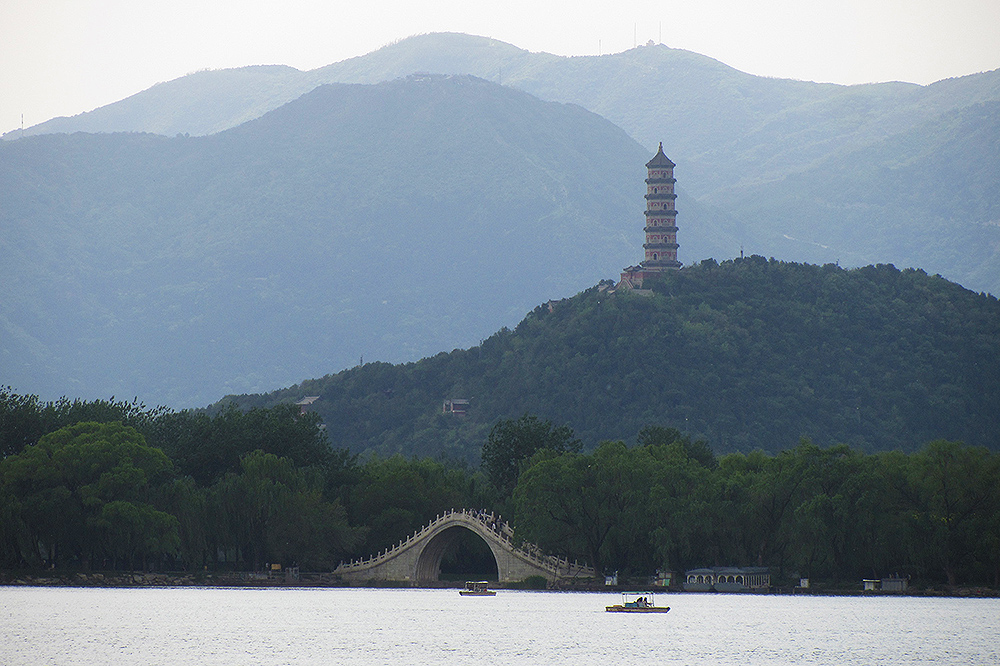 Παλάτι είπα ε; Είναι κάτι παραπάνω. Για μένα είναι η πιο όμορφη αρχιτεκτονική τοπίου που έχω δει στη ζωή μου! Μέχρι πριν λίγο διέσχιζα λεωφόρο 5 λωρίδων κυκλοφορίας περνώντας δίπλα από φαστφουντάδικα και ξαφνικά βρέθηκα σε έναν χώρο με λίμνες, καλαμιώνες, πάπιες, καταπράσινα βουνά, παγόδες και βουδιστικές στούπες πάνω στις κορυφογραμμές. Έτσι ανάλογα είχα νιώσει στο Central Park της Νέας Υόρκης αλλά εκεί έβλεπες τουλάχιστον τους ουρανοξύστες στο βάθος να σου υπενθυμίζουν που βρίσκεσαι. Για πότε η πόλη χάθηκε και βρέθηκα στην Κίνα του 1800 ακόμα προσπαθώ να το συνειδητοποιήσω πώς έγινε!