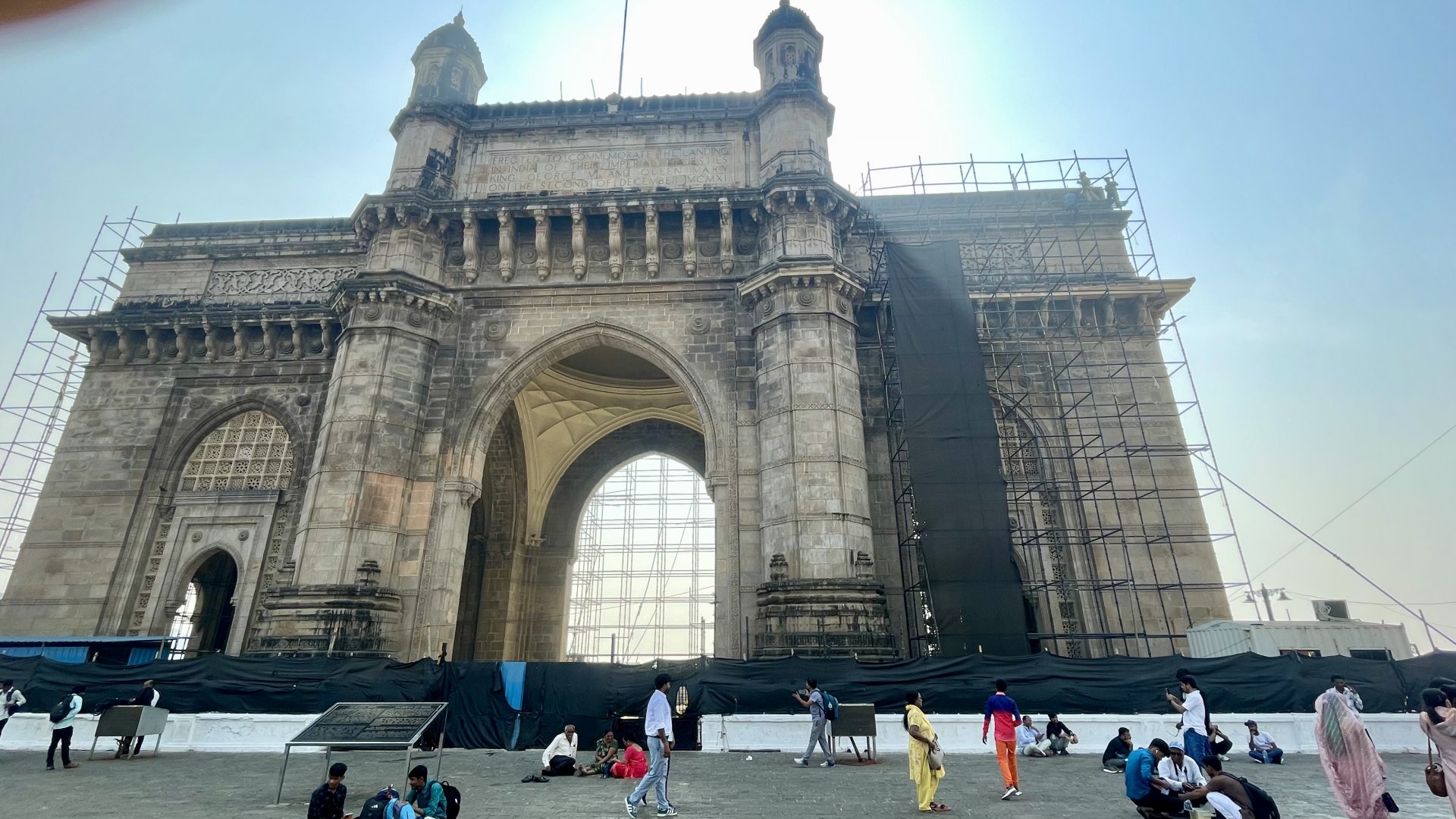 Ο χώρος ήταν πλημμυρισμένος από κόσμο. Βλαχαδερα από τα τελευταία χωριά της Ινδιας είχαν κουβαληθεί να βγουν φωτογραφία στην Gate of India . Που ήταν και με σκαλωσιές συντήρησης . Quelle decadence. .