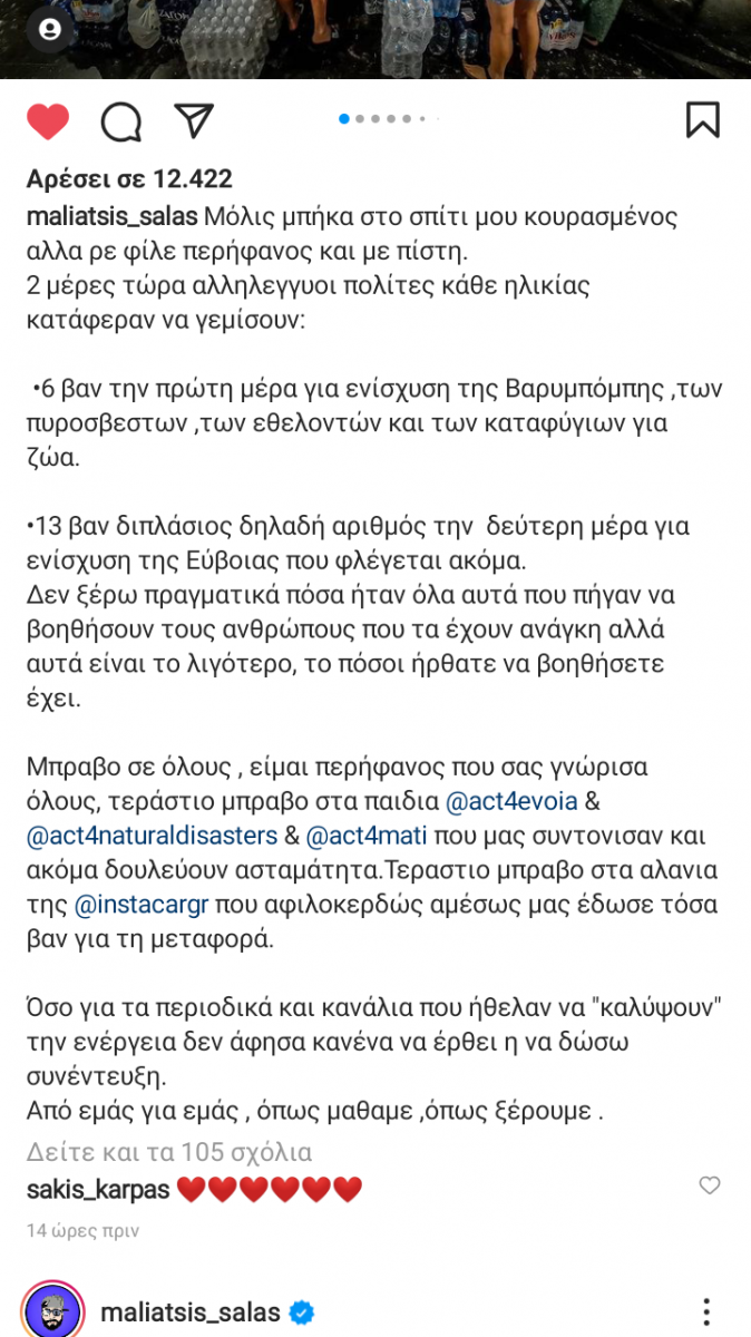 Τι μόνο που μπορώ να σκεφτώ, είναι να ανοιχθεί ή να προταθεί, ένας λογαριασμός για τους πυροπληκτους ώστε όποιος θέλει να βοηθήσει... ούτε εγώ να τον ανοίξω φυσικά, ούτε το φόρουμ, αν και θεωρώ πως θα ανοιχτούνε...