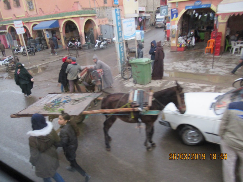Το λεωφορείο άνετο και καθαρό ξεκίνησε και έφτασε στο Μαρακές στην προγραμματισμένη ώρα με μία εικοσάλεπτη στάση για ξεκούραση. Το εισιτήριο 8 ευρώ το άτομο. Ένα ψιλόβροχο είχαμε στη διαδρομή στο Μαρακές έκανε κατακλυσμό, το ταξί έφτασε κοντά στην είσοδο του ξενοδοχείου μας Le Grand Imilchil αλλά και γι αυτή τη μικρή απόσταση χρειαστήκαμε ομπρέλες. Έξω από το ξενοδοχείο μας πανέμορφα πάρκα λίγο πιο πέρα φαινόταν το Κουτούμπια κοντά του η Jemma El Fna και η βροχή με το τουλούμι!