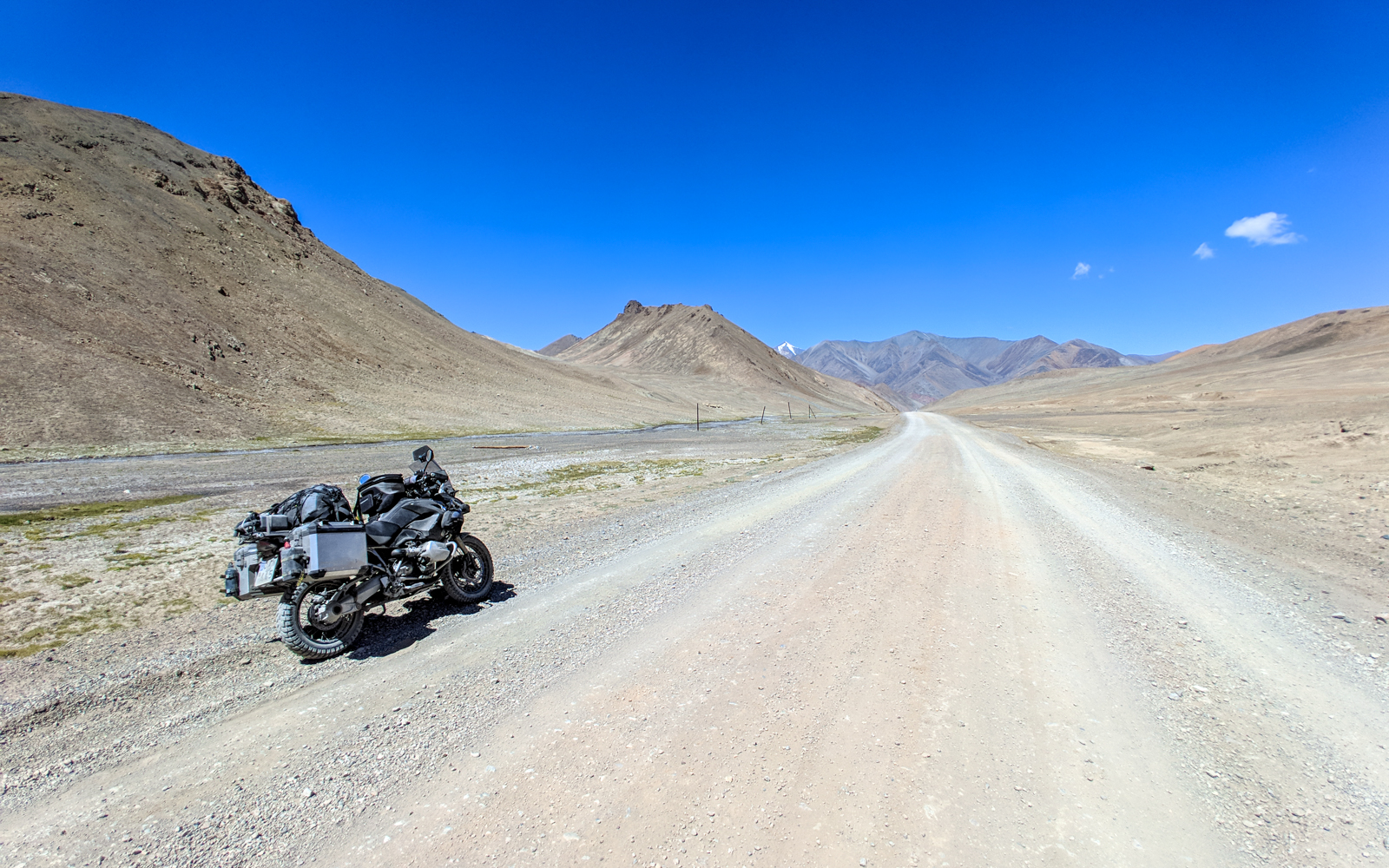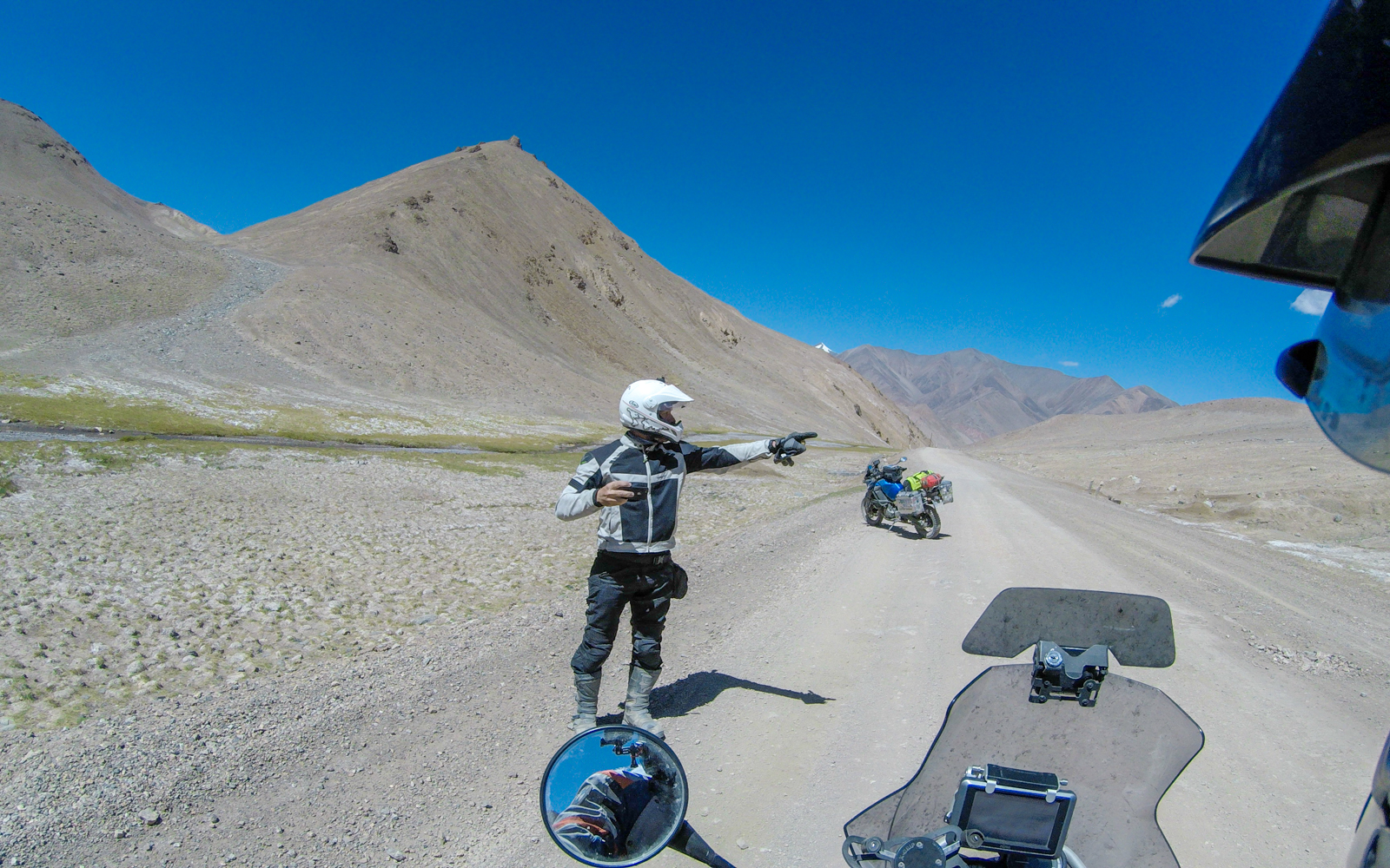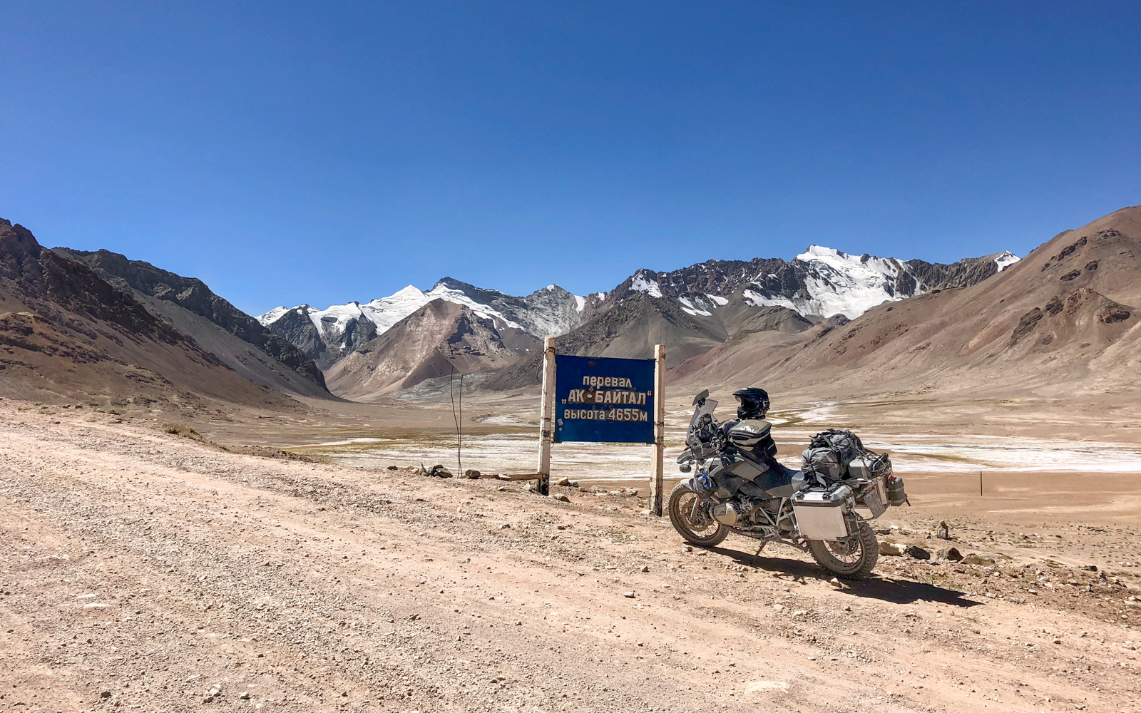Επιτέλους φτάνουμε στα σύνορα απ την μεριά του Τατζικιστάν όπου συναντήσαμε άλλα 2 Gs (650 και 1200) ! Εκεί ήταν και το μοναδικό σημείο που έκανε λίγο κρύο λόγω του αρκετού αέρα (12 βαθμούς). Φανταστείτε στο Ak Baital στα 4655μ είχε 15! Ο καιρός μας έκανε το χατήρι διαρκώς! Πλέον ήμασταν και πάλι πάνω από τα 4000 μέτρα...