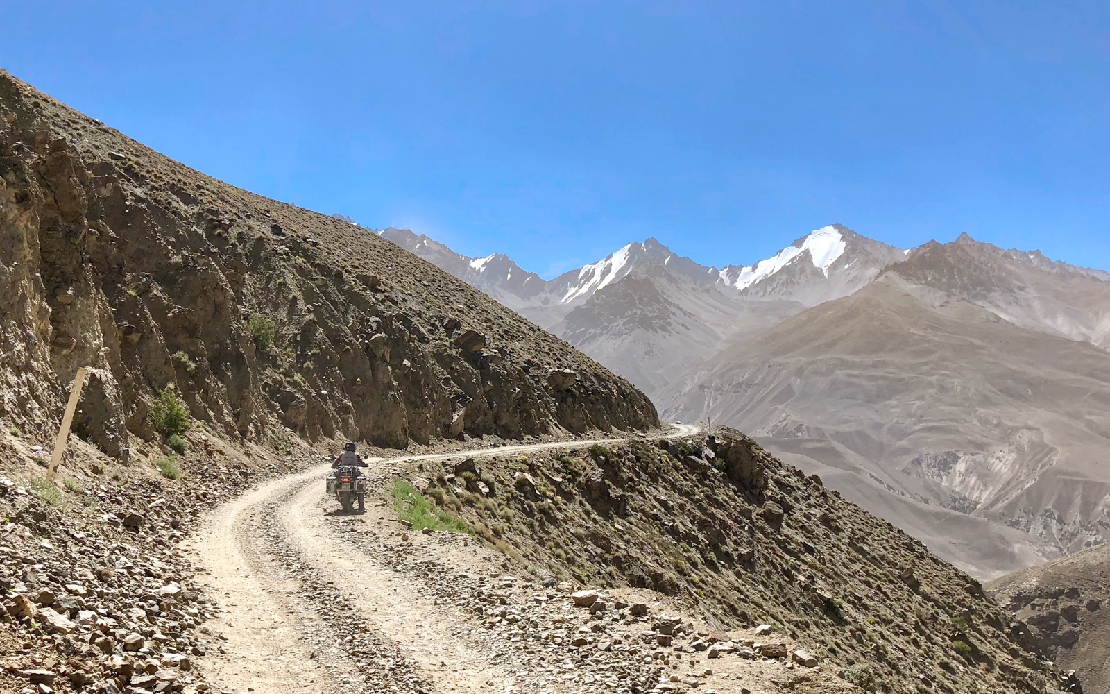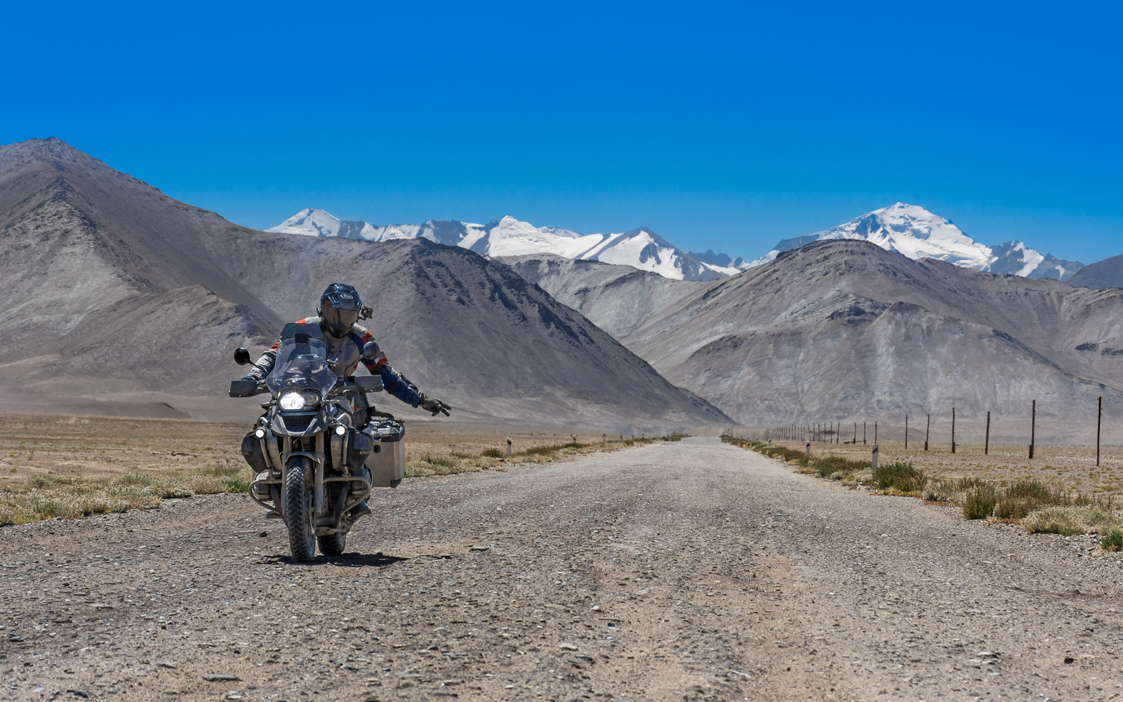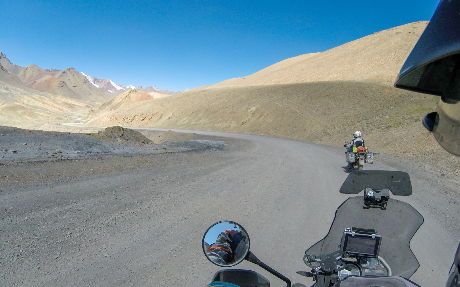 Επιτέλους φτάνουμε στα σύνορα απ την μεριά του Τατζικιστάν όπου συναντήσαμε άλλα 2 Gs (650 και 1200) ! Εκεί ήταν και το μοναδικό σημείο που έκανε λίγο κρύο λόγω του αρκετού αέρα (12 βαθμούς). Φανταστείτε στο Ak Baital στα 4655μ είχε 15! Ο καιρός μας έκανε το χατήρι διαρκώς! Πλέον ήμασταν και πάλι πάνω από τα 4000 μέτρα...