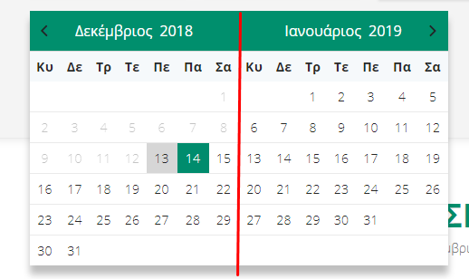 Αφεντικό, πότε θα μπει το διαχωριστικό στη μέση των 2 μηνών στην αναζήτηση; Πονάνε τα μάτια μου κάθε φορά που θέλω να επιλέξω ημερομηνία. Επίσης, νομίζω είναι προτιμότερο να ξεκινάει η εβδομάδα από Δευτέρα και όχι από Κυριακή.