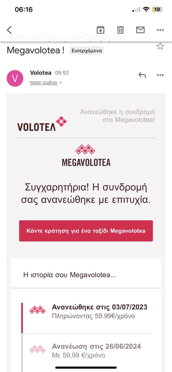 Ακολουθωντας οδηγιες του Φορουμ παρεπεμψα σε φιλο να βγαλει με 20 ευρω ετησιο το προγραμμα του MEGA VOLOTEA για ενα ετος και του ζητησα επι λεξη να ζητησει ακυρωση την επομενη μερα της ετησιας συνδρομης γιατι ζηταει κοστος ανω των 50 ευρω τον χρονο και γινεται αυτοματα οπως ακριβως το αναλυσατε εδω μεσα!