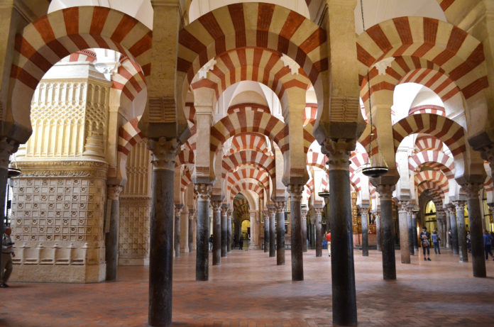 Το επιβλητικό οικοδόμημα της Mezquita, ένα από τα μεγαλύτερα τζαμιά του κόσμου, είναι γνωστό για την ιδιόμορφη αρχιτεκτονική, τις μεγάλες αψιδωτές του πύλες, την αυλή με τα αραβικά σιντριβάνια, καθώς επίσης και την πολύχρωμη αίθουσα με τις αψίδες και τους «αμέτρητους κιόνες όπως οι σειρές των φοινίκων στις οάσεις της Συρίας» όπως τονίζει ο φιλόσοφος και ποιητής Μοχάμεντ Ικμπάλ. Ο συγκεκριμένος ναός αποτελεί ένα κράμα θρησκειών και ιστορίας καθώς το τέμενος διατηρεί έναν καθεδρικό ναό στο κέντρο του, ενώ ο μιναρές του μετατράπηκε σε καμπαναριό, όταν ξαναήρθε στα χέρια των Χριστιανών κατά τον 13ο αιώνα.